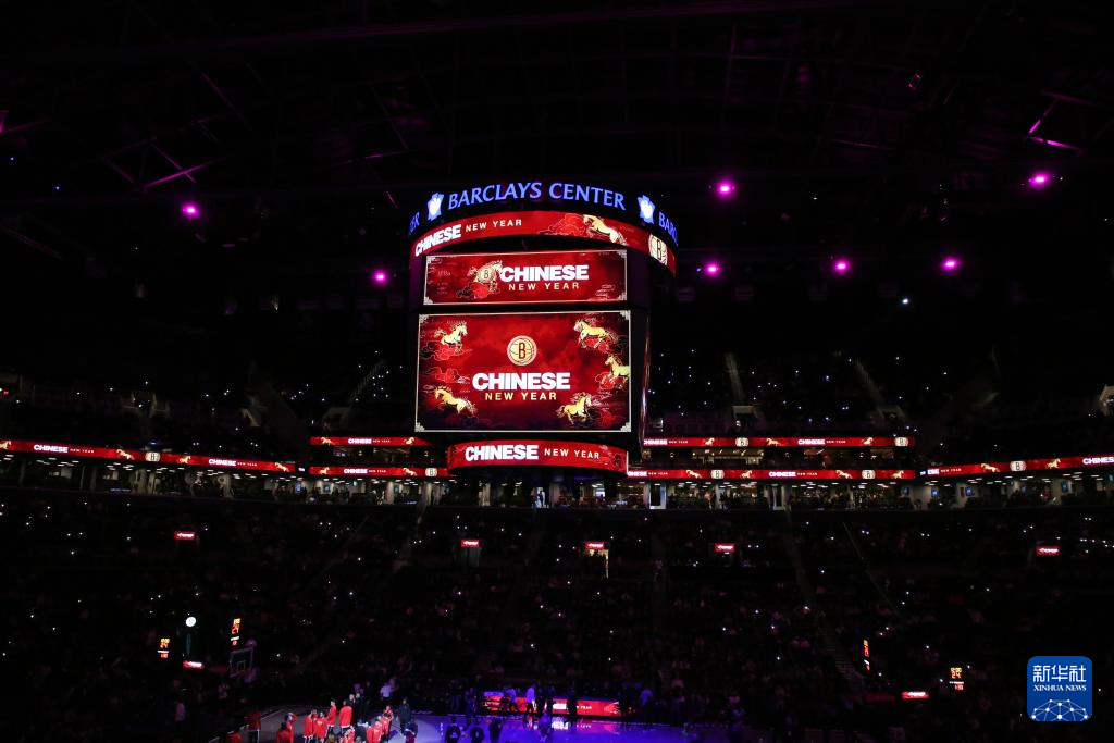 当地时间2月11日,NBA布鲁克林篮网队在主场纽约巴克莱中心举办活动,迎接马年春节到来。