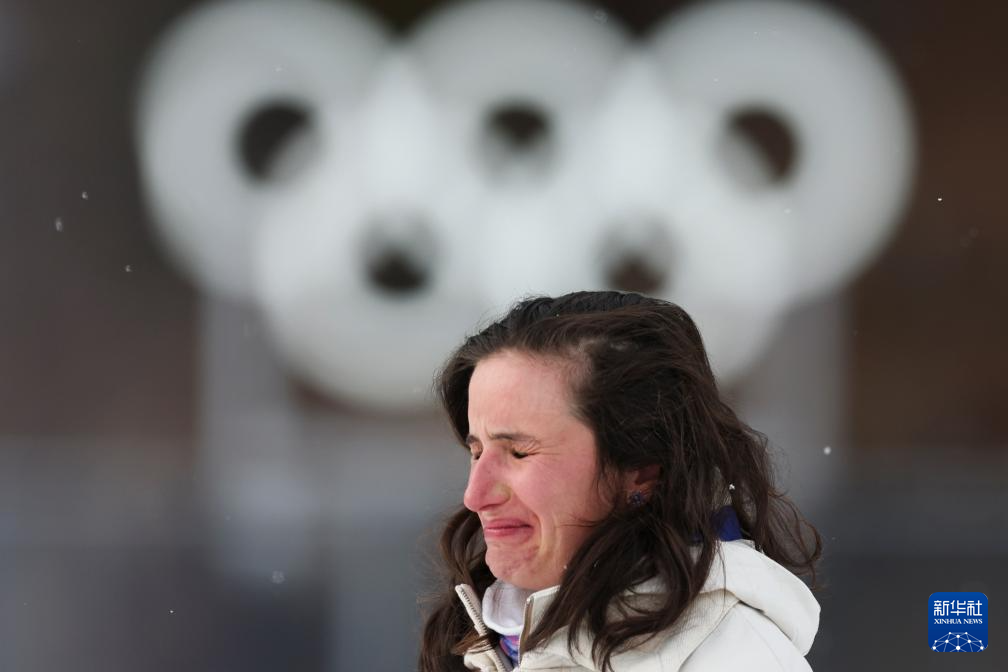 2月11日,冠军法国选手西蒙在颁奖仪式上流泪。