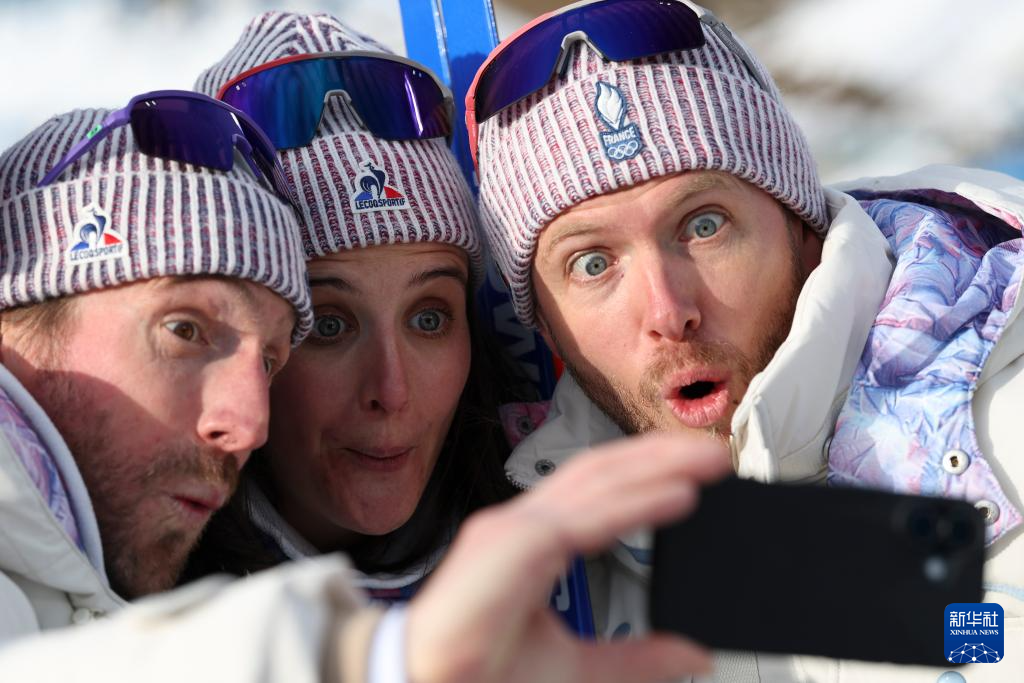2月11日,法国队在颁奖仪式后合影。
