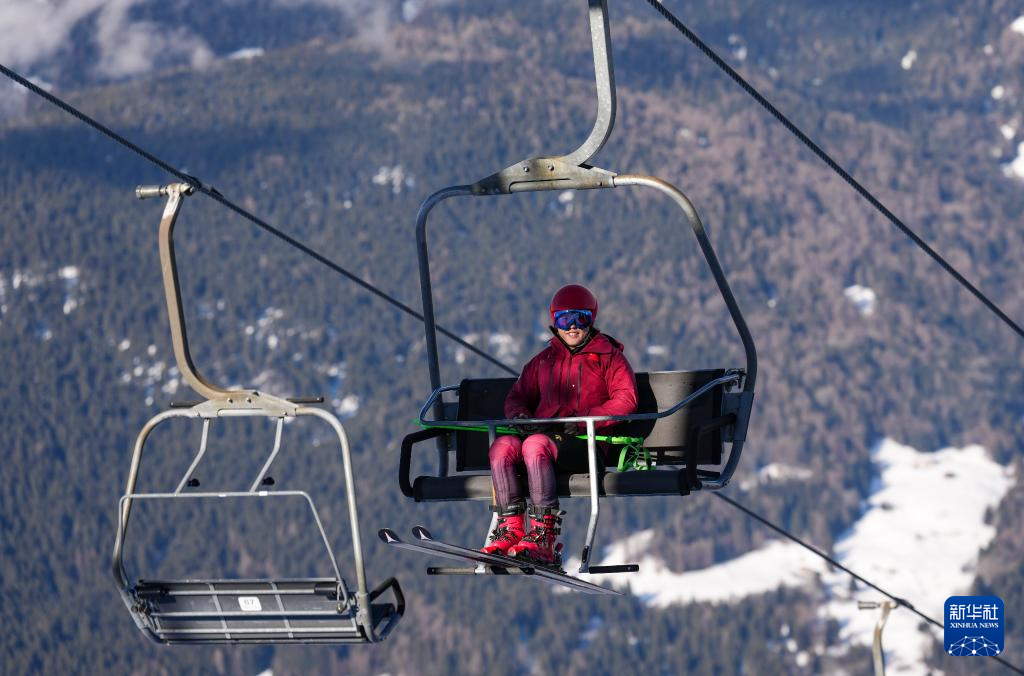 2月12日,刘校辰乘坐缆车抵达训练场地。