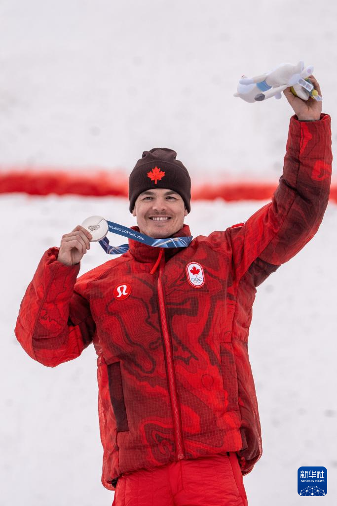 2月12日,亚军加拿大选手米凯尔·金斯伯里在颁奖仪式上。