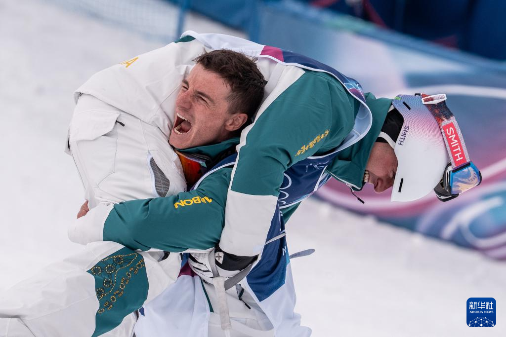 2月12日,澳大利亚选手库珀·伍兹(上)在比赛后庆祝。他获得冠军。