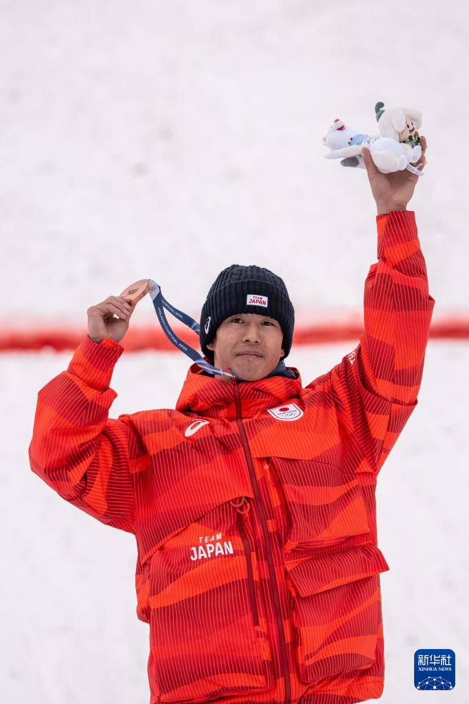 2月12日,季军日本选手堀岛行真在颁奖仪式上。