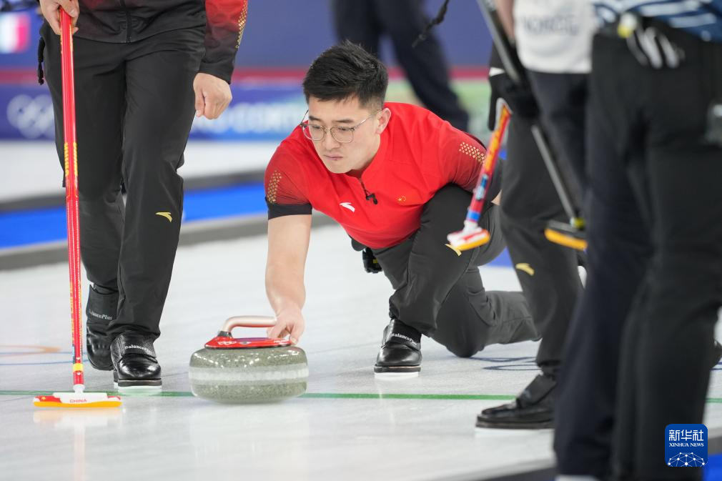 当地时间2月13日,在意大利科尔蒂纳举行的米兰-科尔蒂纳冬奥会冰壶男子循环赛中,中国队对阵挪威队。