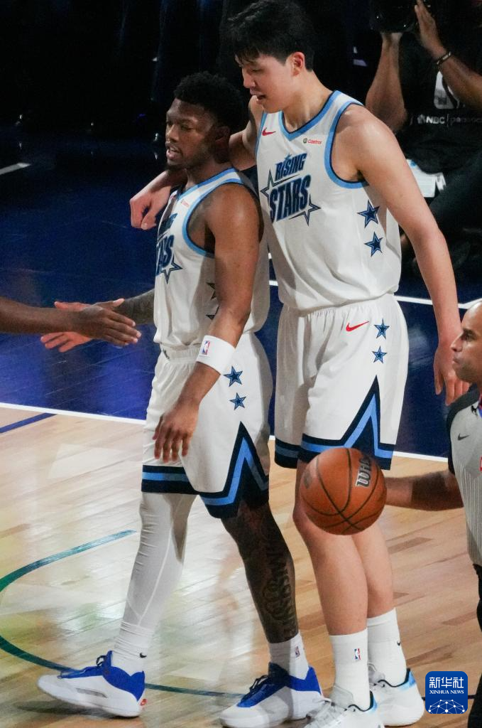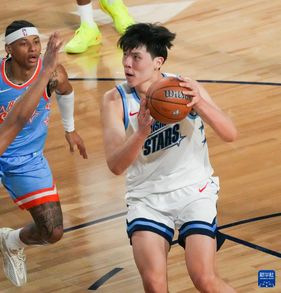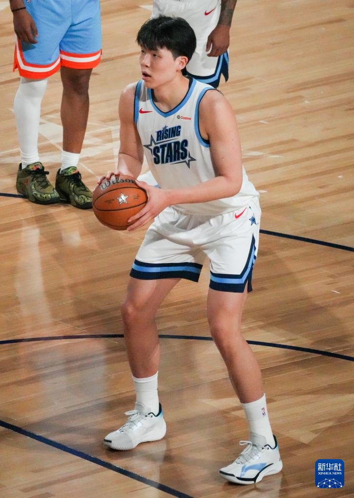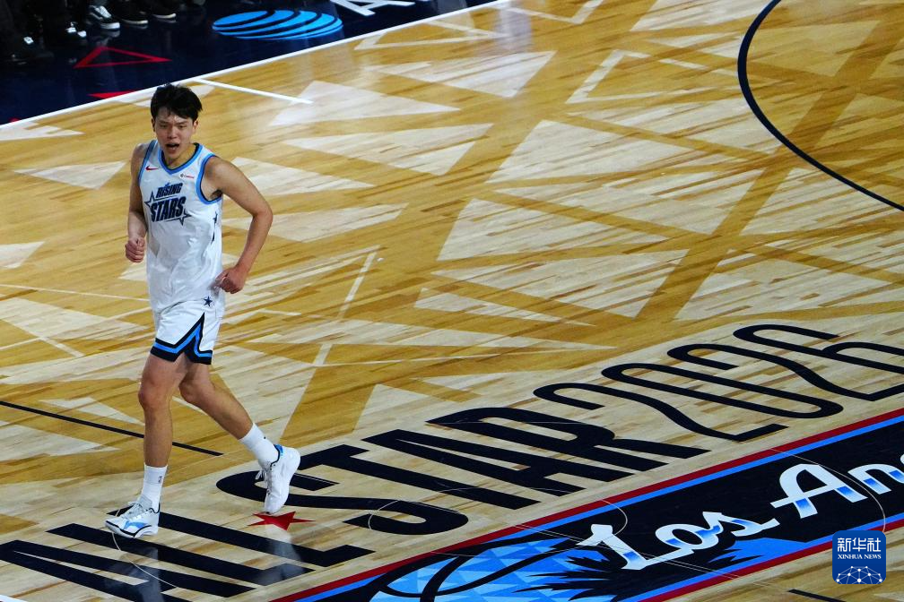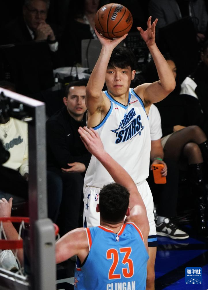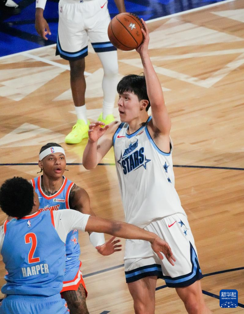 当地时间2月13日,美国职业男篮联赛(NBA)全明星新秀赛在洛杉矶举行,里弗斯队34比40不敌安东尼队。中国球员杨瀚森替补出场,为里弗斯队拿下10分。