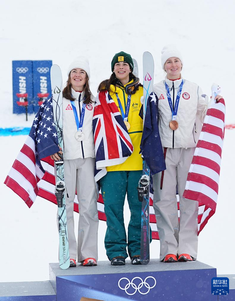 当地时间2月14日,在意大利利维尼奥举行的米兰-科尔蒂纳冬奥会自由式滑雪女子双人雪上技巧比赛中,澳大利亚选手安东尼获得冠军、美国选手考夫和莱姆利分别获得亚军和季军。