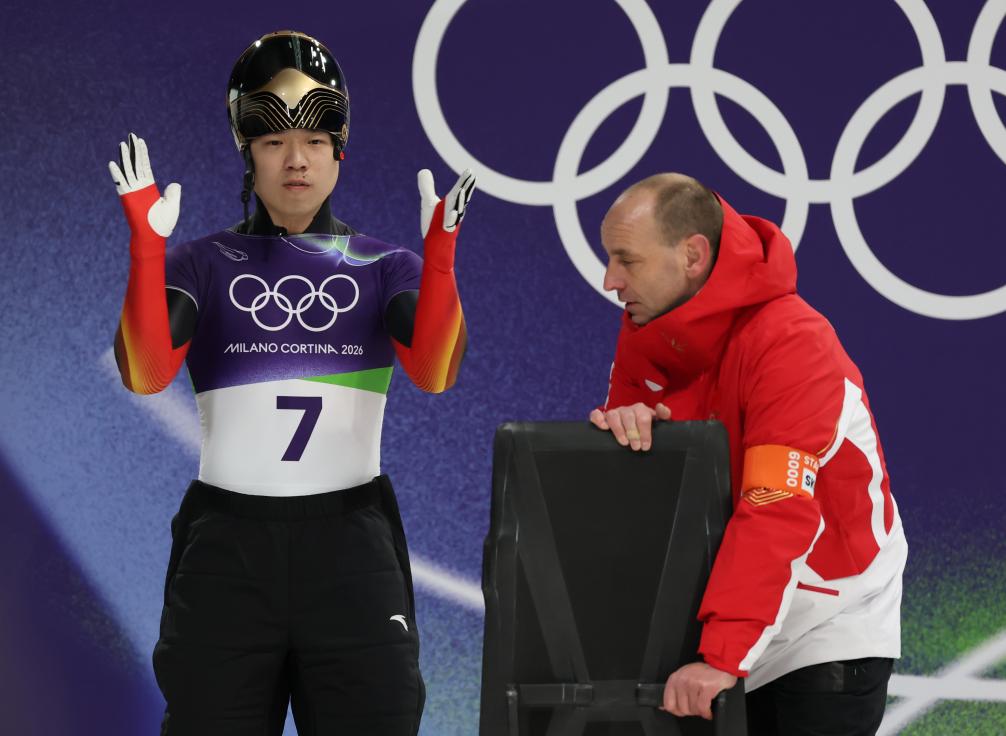 当地时间2月13日,米兰-科尔蒂纳冬奥会钢架雪车项目男子组比赛在意大利科尔蒂纳举行。