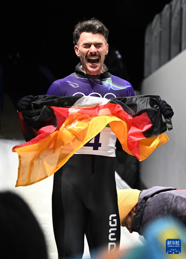 2月13日,德国选手容克在比赛后庆祝。他获得亚军。