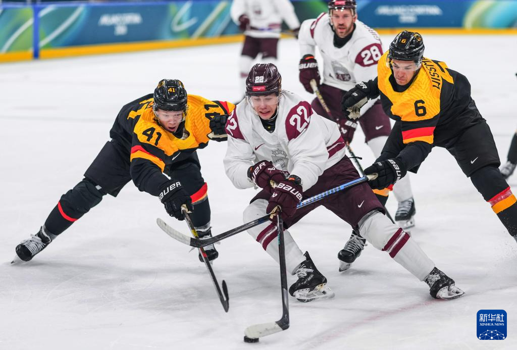 当地时间2月14日,在意大利米兰举行的米兰-科尔蒂纳冬奥会冰球项目男子小组赛C组比赛中,拉脱维亚队4比3战胜德国队。