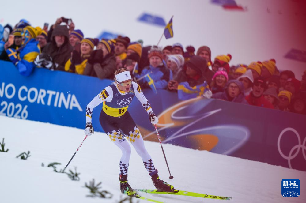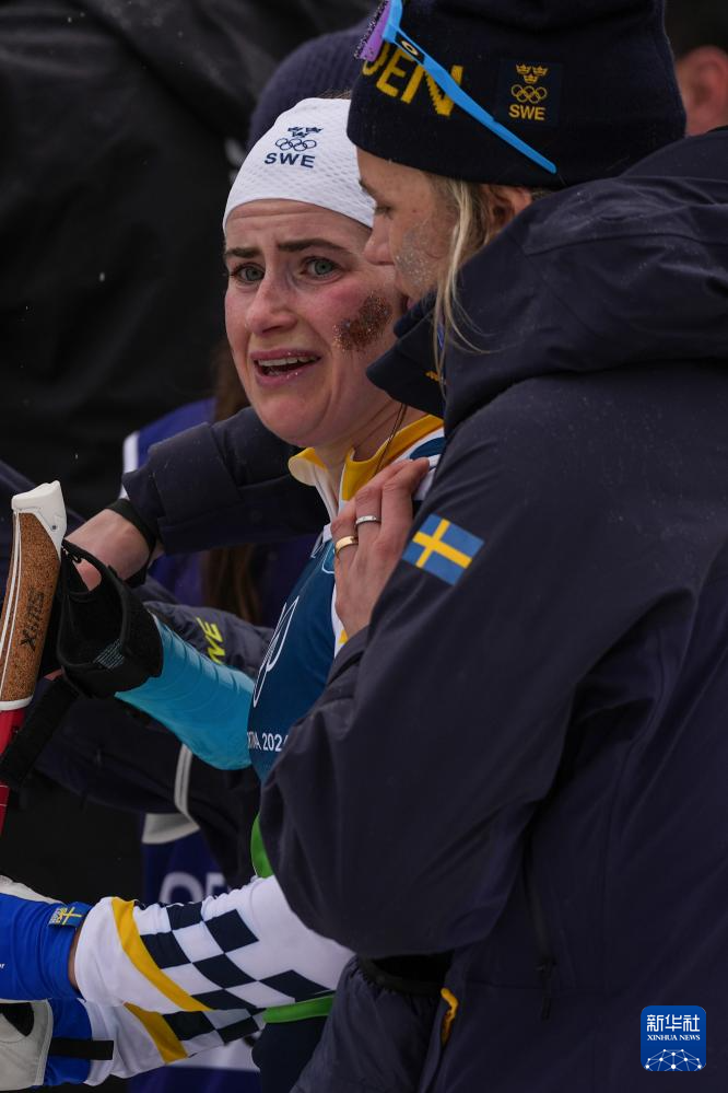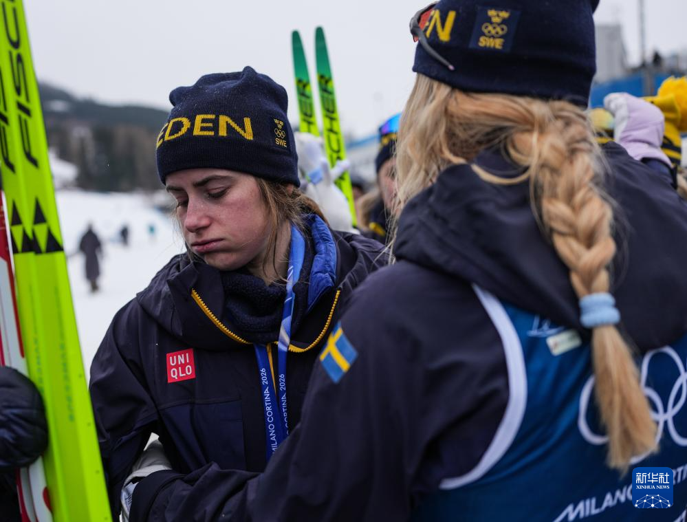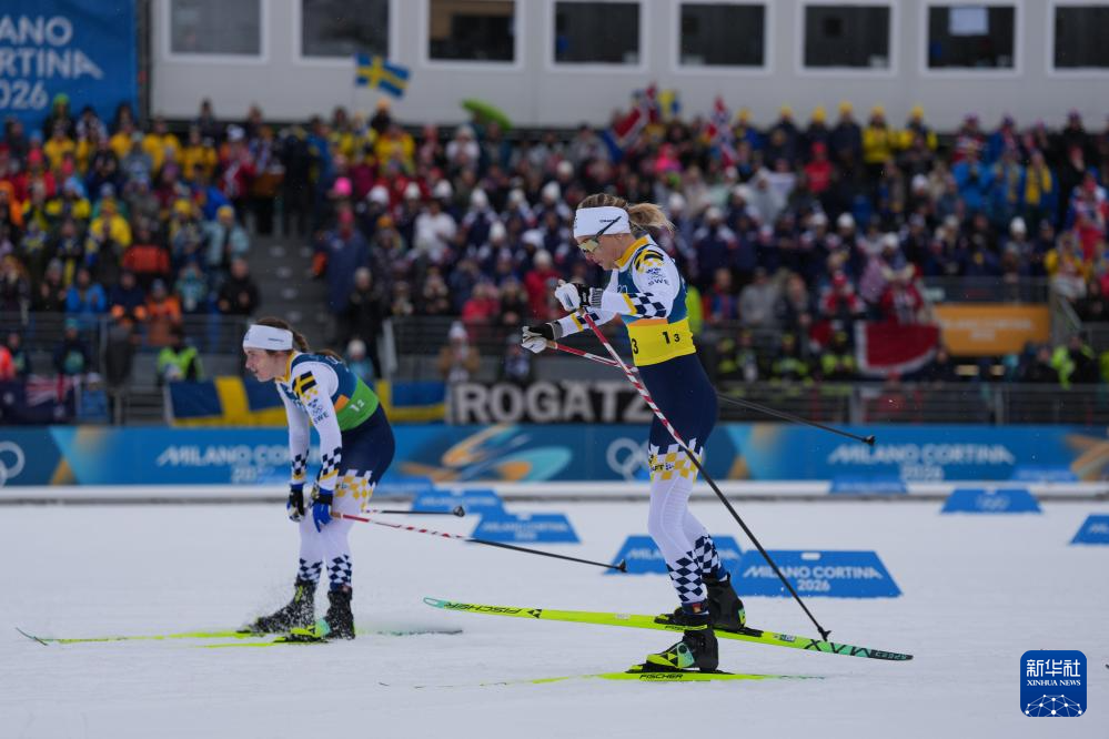2月14日,瑞典队选手弗里达·卡尔松(右)在比赛中。瑞典队获得亚军。