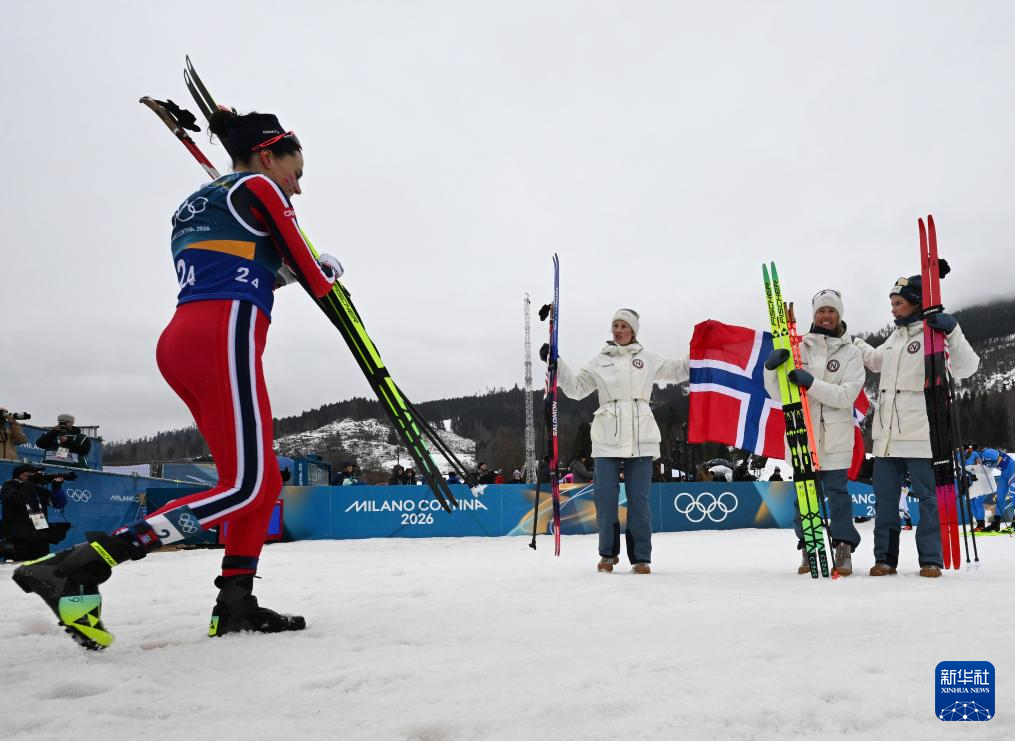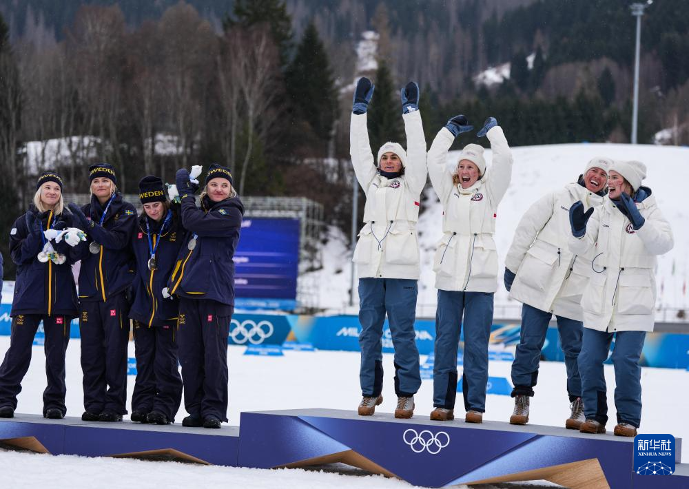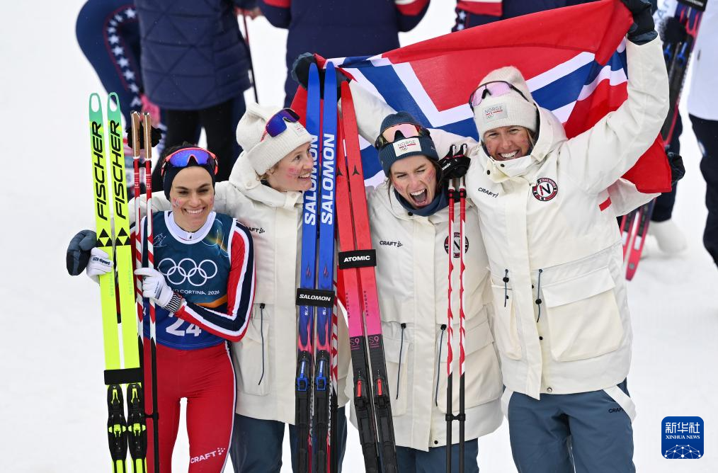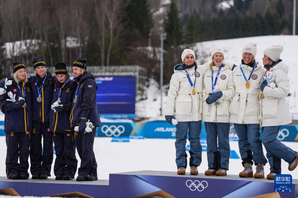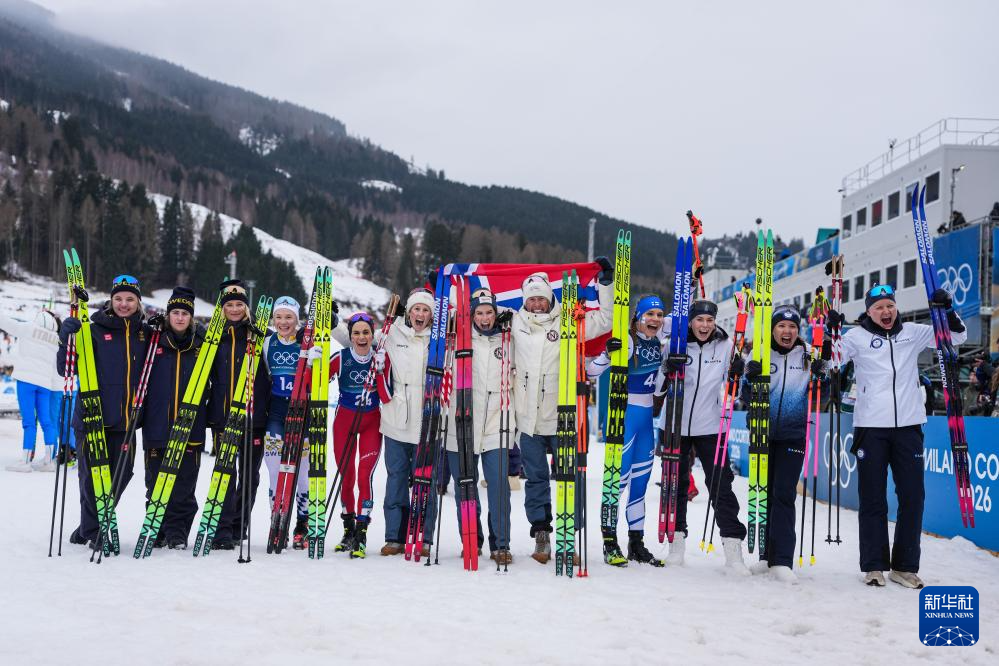 当地时间2月14日,在意大利泰塞罗举行的米兰-科尔蒂纳冬奥会越野滑雪女子4X7.5公里接力比赛中,挪威队夺得冠军,瑞典、芬兰队分获亚军和季军。