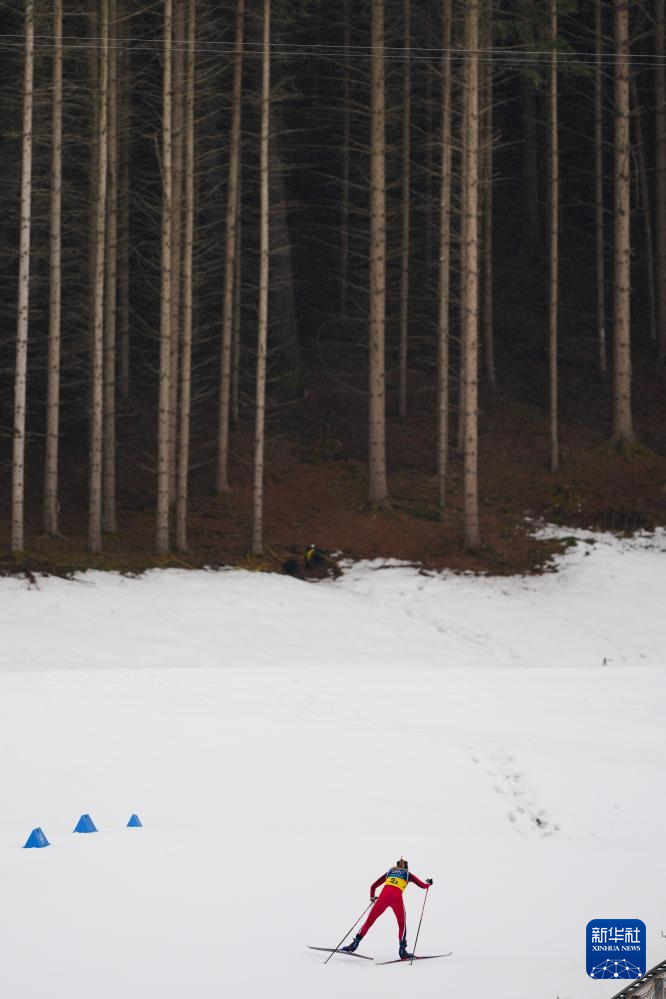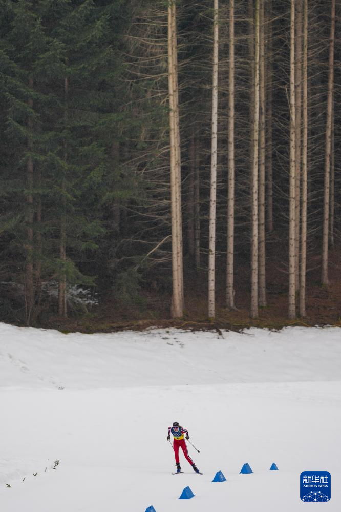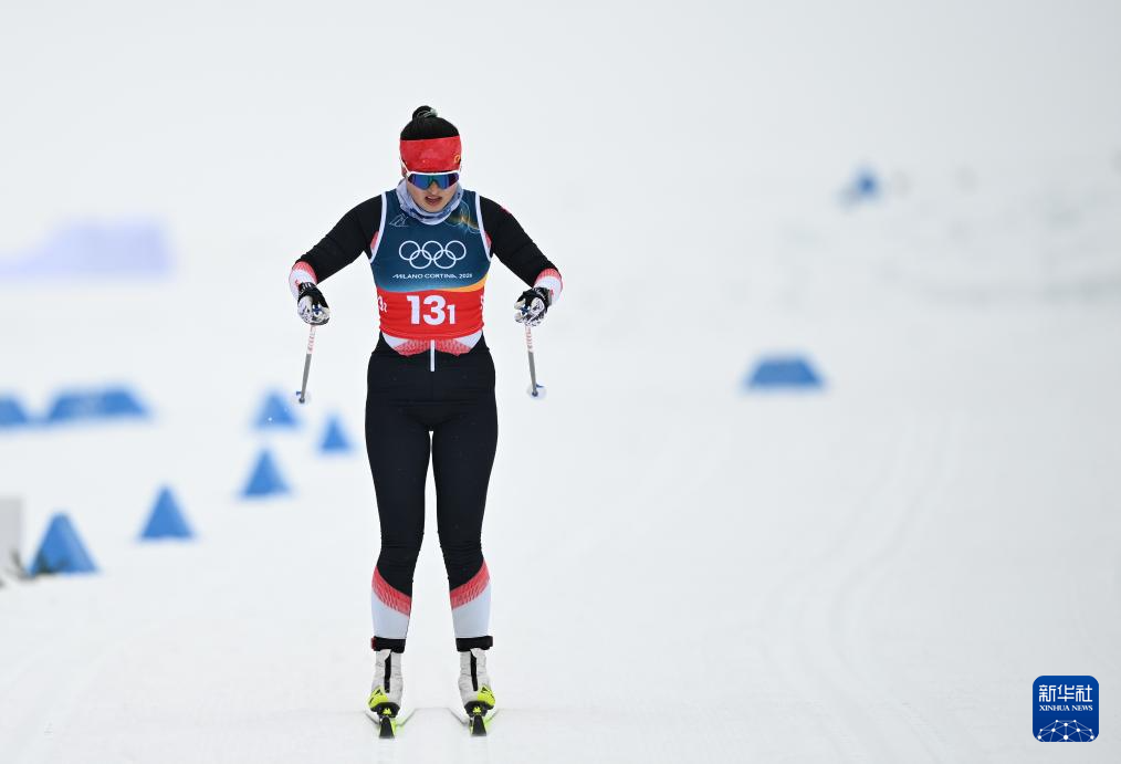 2月14日,中国队选手迪妮格尔·衣拉木江在比赛中。中国队获得第19名。