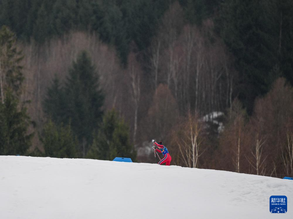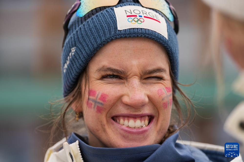 2月14日,挪威队选手克里斯廷·奥斯特古伦·福斯内斯在比赛后等待成绩确认。挪威队获得冠军。