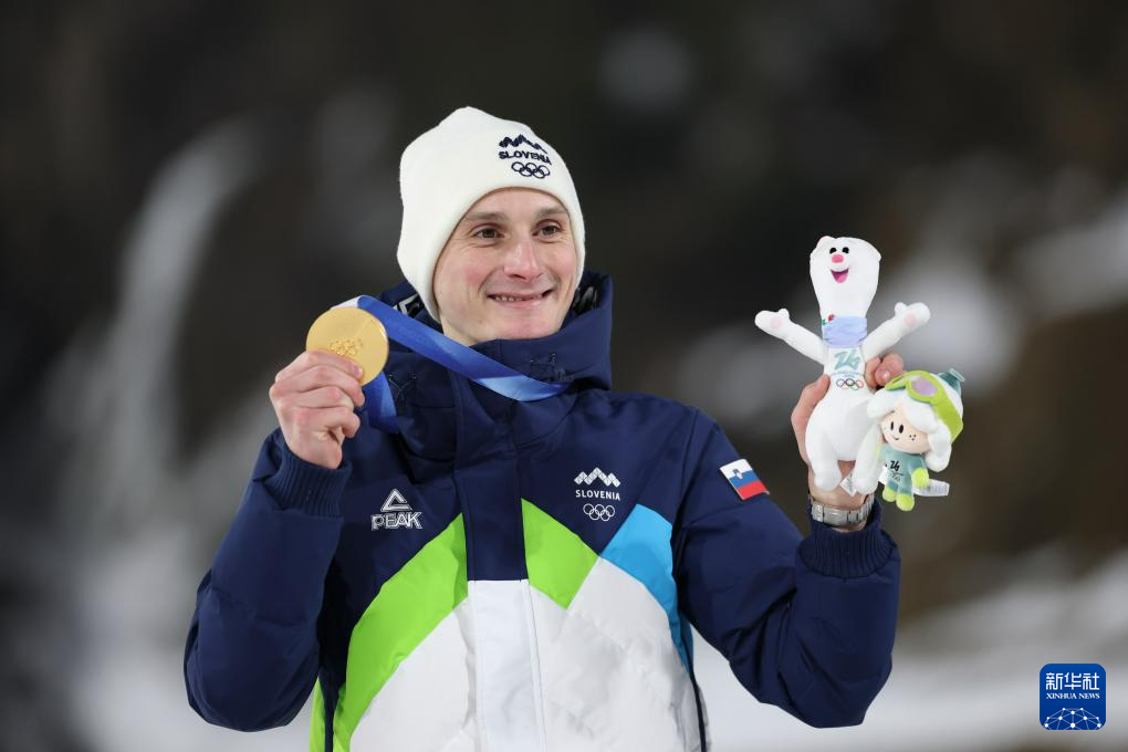2月14日,冠军斯洛文尼亚选手多门·普雷夫茨在颁奖仪式上。