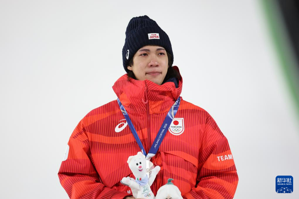 2月14日,日本选手二阶堂莲在比赛后庆祝。他获得亚军。