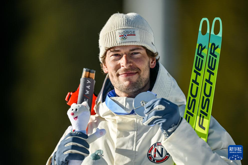 2月15日,亚军挪威选手莱格雷德在颁奖仪式上。