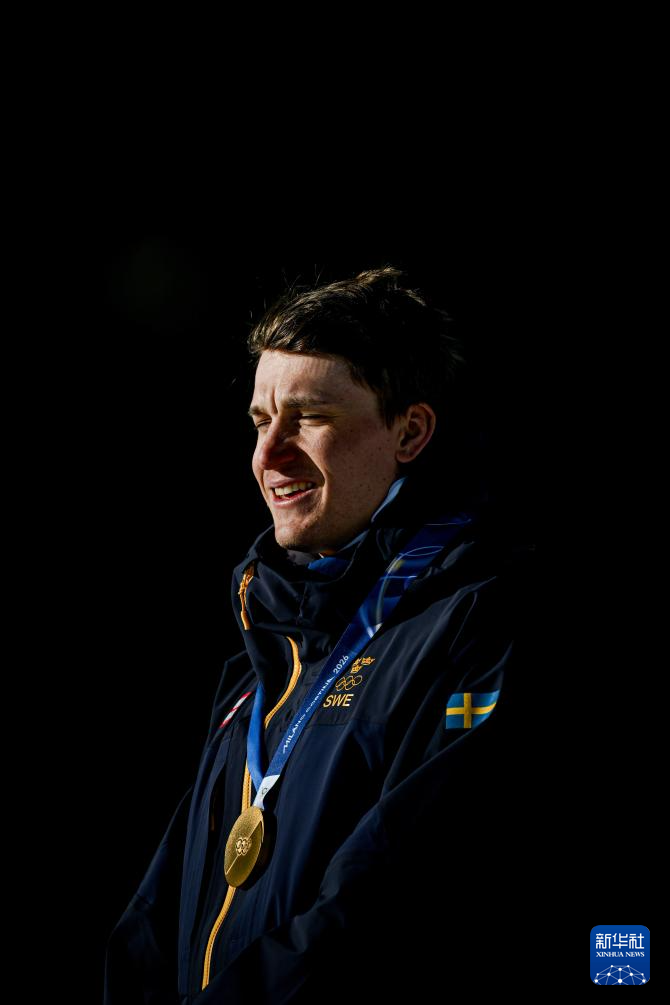 2月15日,冠军瑞典选手蓬西卢奥马在颁奖仪式上。