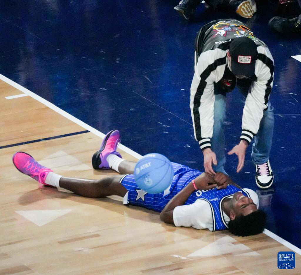 2月14日,魔术队球员杰斯·理查德森在全明星扣篮大赛中扣篮后摔倒在地。