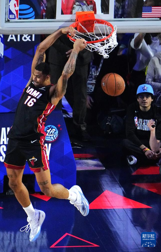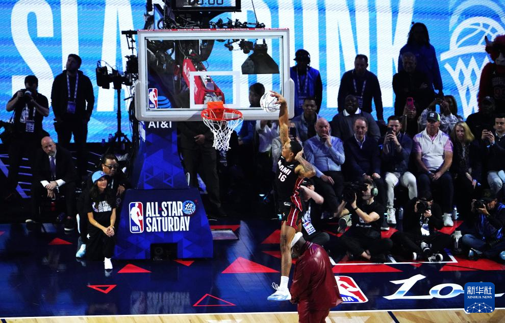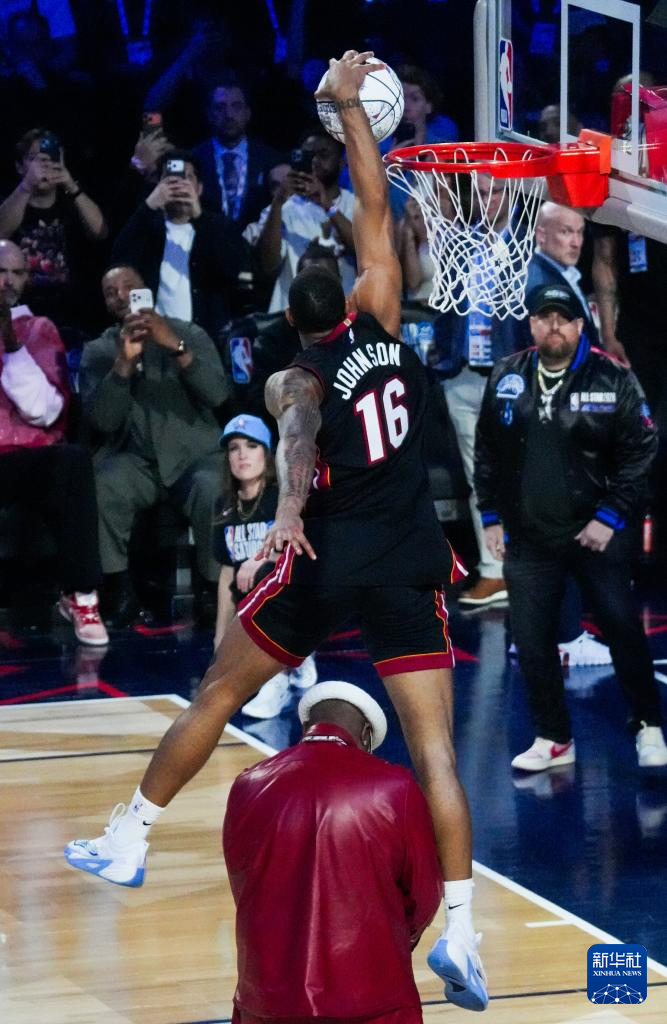 2月14日,热火队球员凯沙德·约翰逊在全明星扣篮大赛中扣篮。