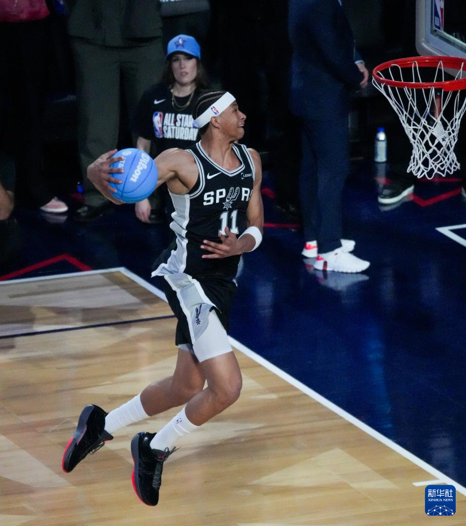 2月14日,马刺队球员卡特·布莱恩特在全明星扣篮大赛中扣篮。