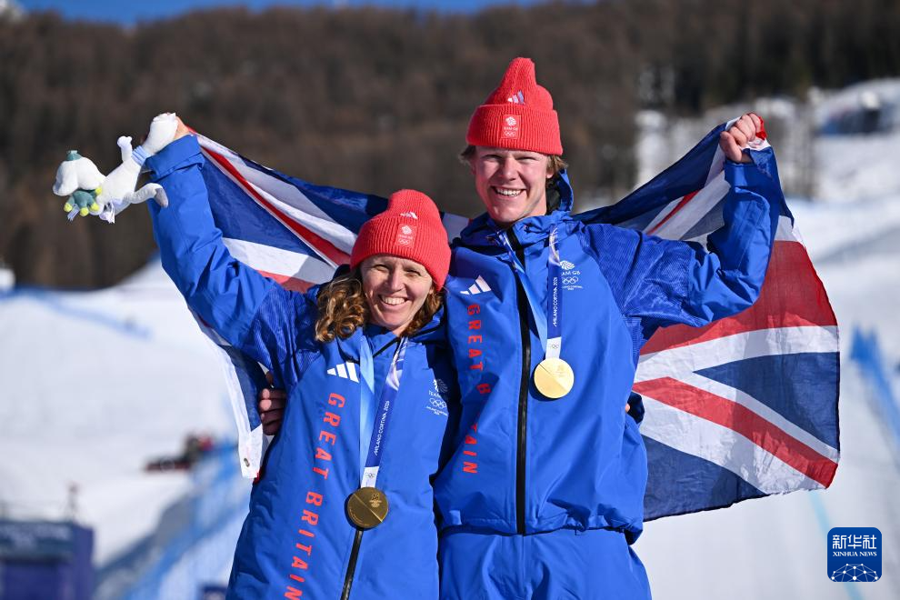 2月15日,英国1队选手休·奈廷格尔(右一)在决赛中。他与搭档夏洛特·班克斯获得冠军。