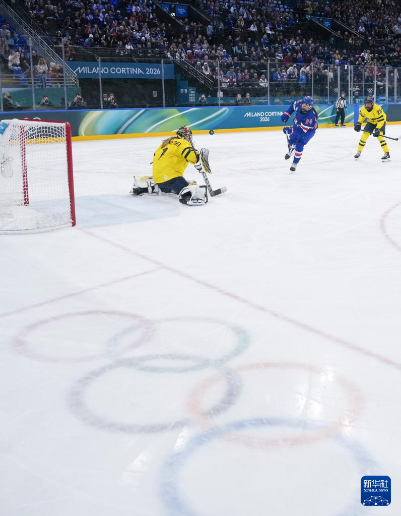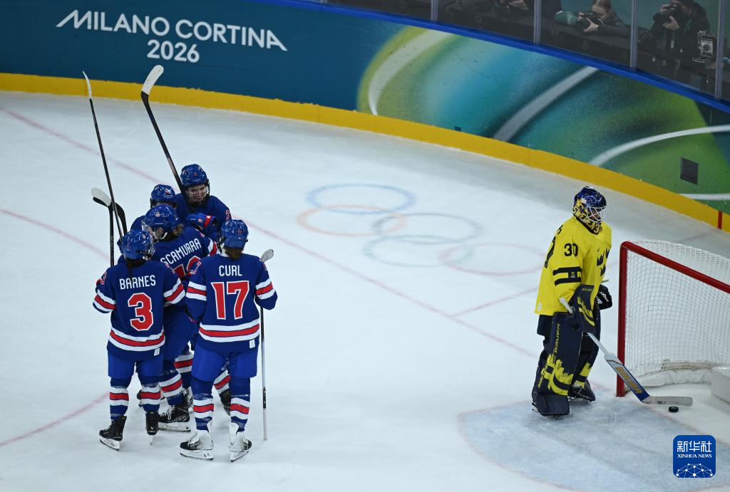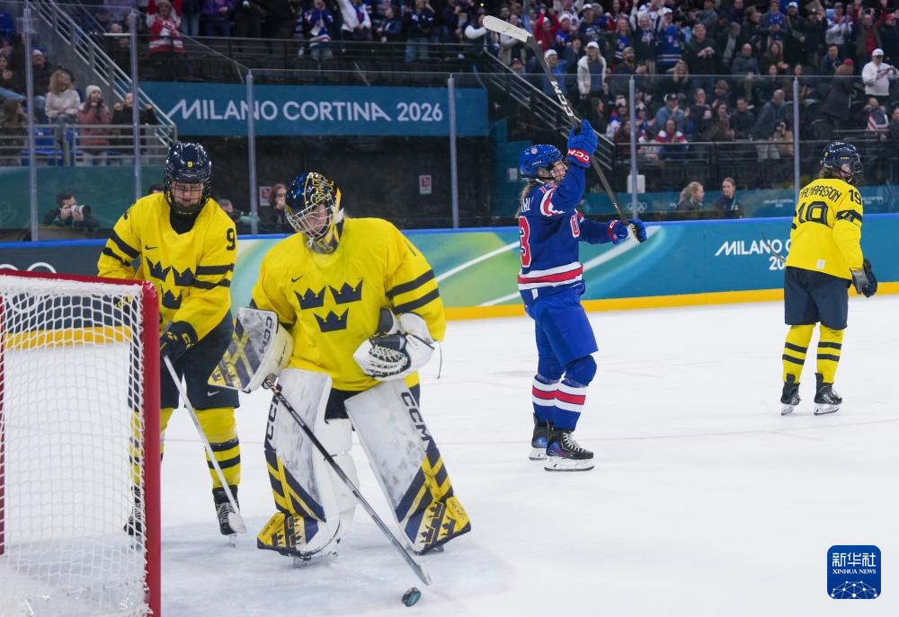 当地时间2月16日,在意大利米兰举行的米兰-科尔蒂纳冬奥会冰球项目女子半决赛中,美国队5比0战胜瑞典队。