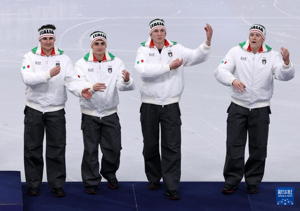 2月20日,季军意大利队在颁奖仪式上。