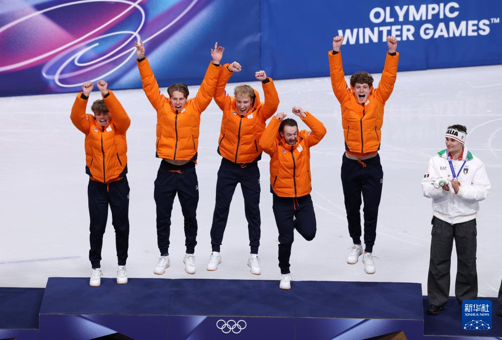2月20日,冠军荷兰队在颁奖仪式上。