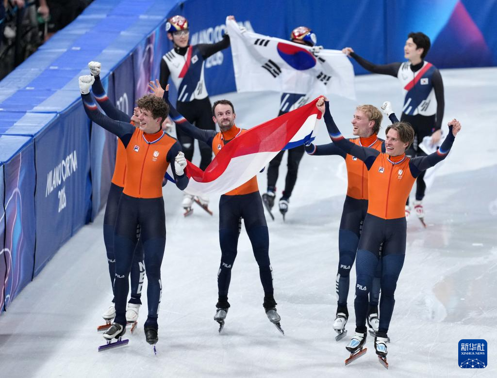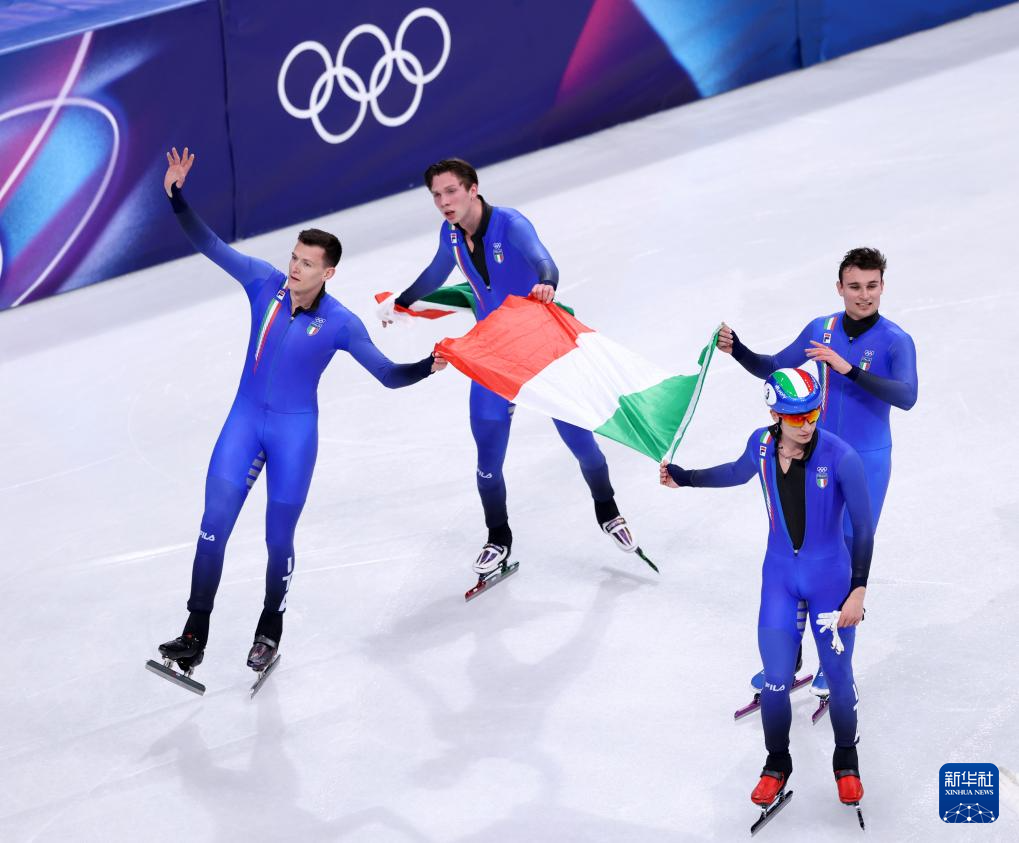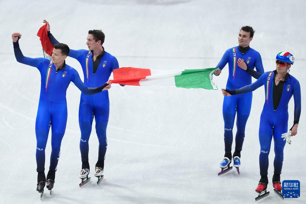 当地时间2月20日,米兰-科尔蒂纳冬奥会短道速滑男子5000米接力A组决赛在意大利米兰举行。