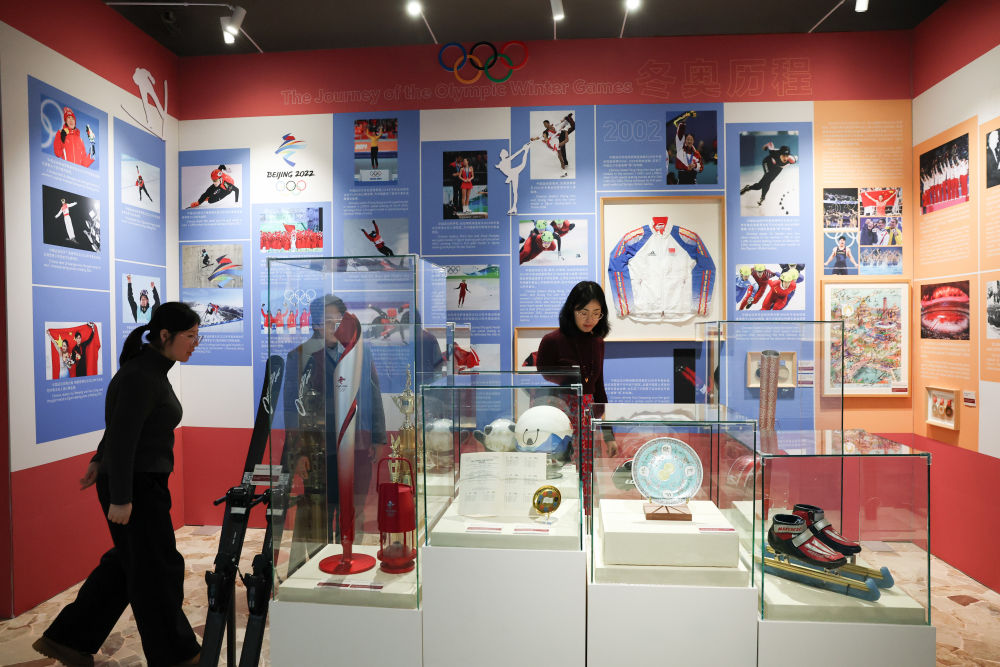 2月4日,人们在冬奥会“中国之家”参观“冬奥历程”展示区。新华社记者 李京 摄