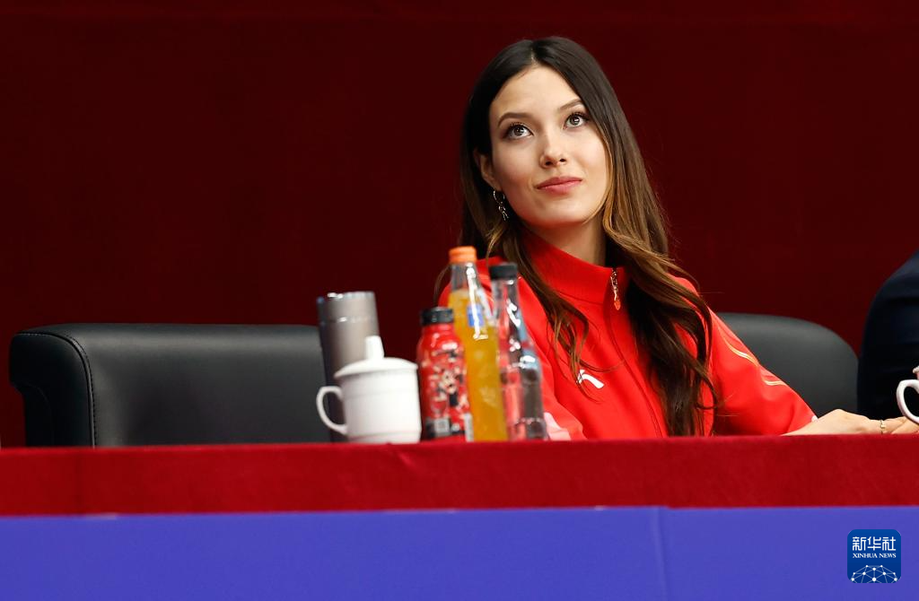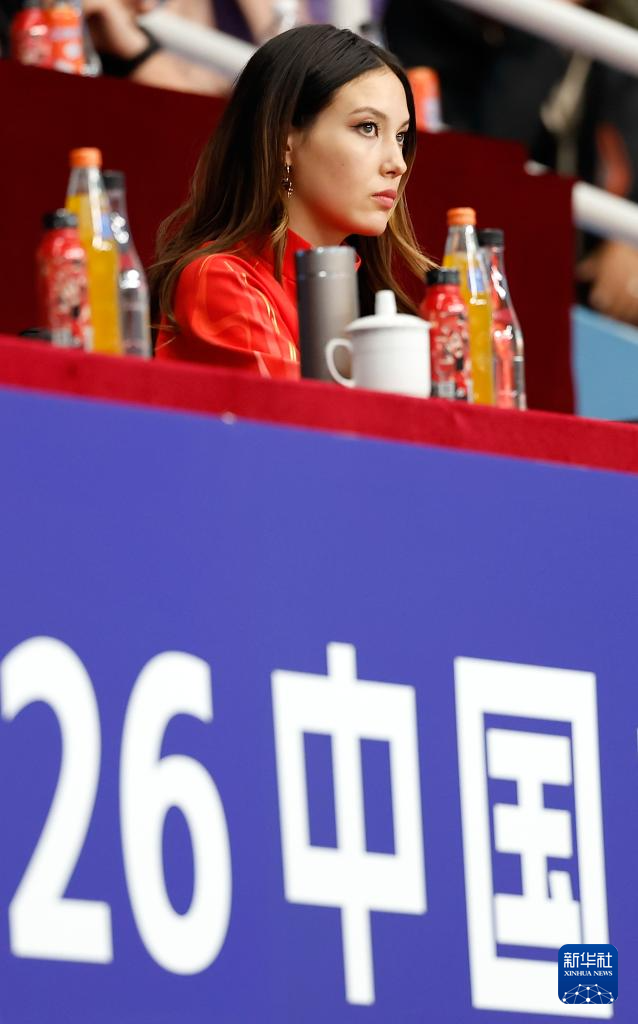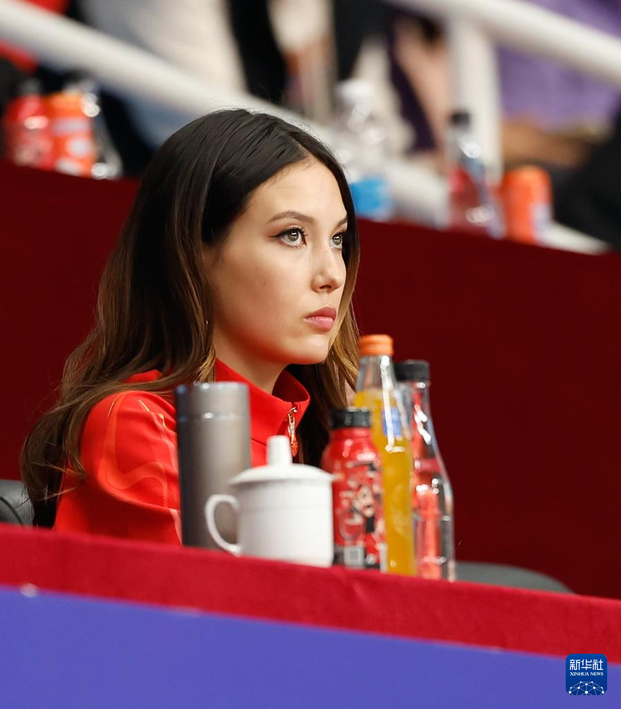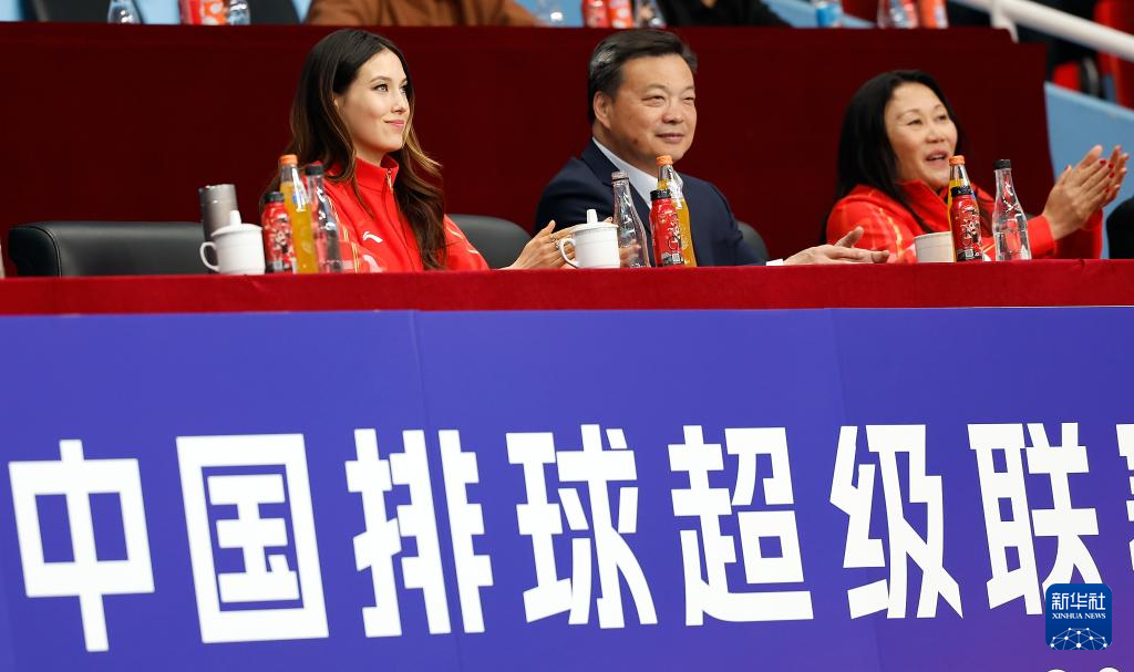 2月28日,冬奥会冠军、中国自由式滑雪运动员谷爱凌在看台上观看女排超级联赛季后赛。
