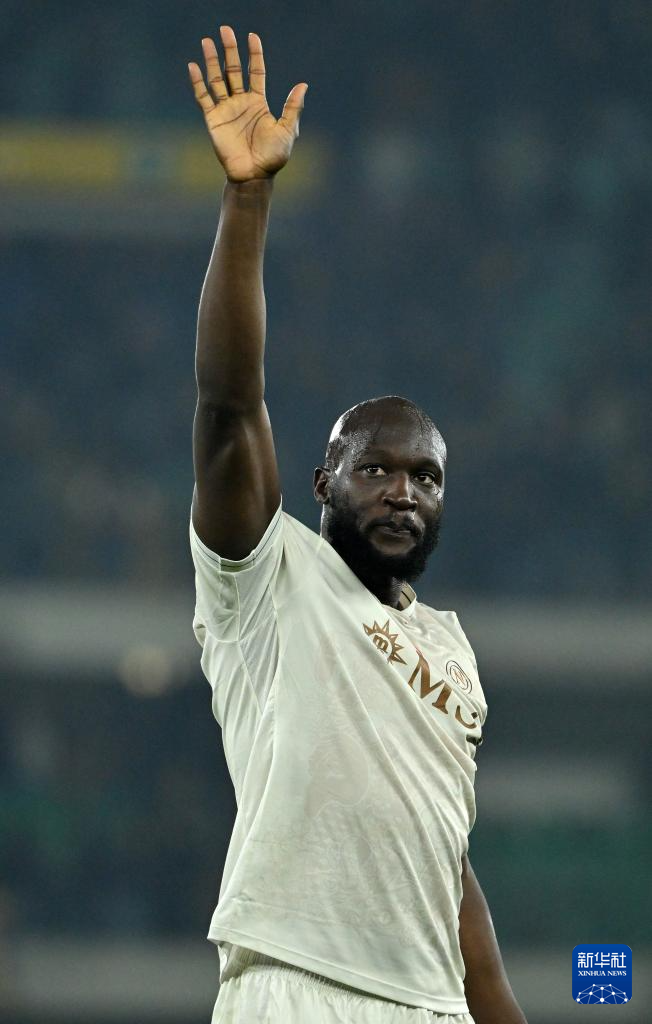 2月28日,那不勒斯队球员卢卡库在赛后庆祝胜利。