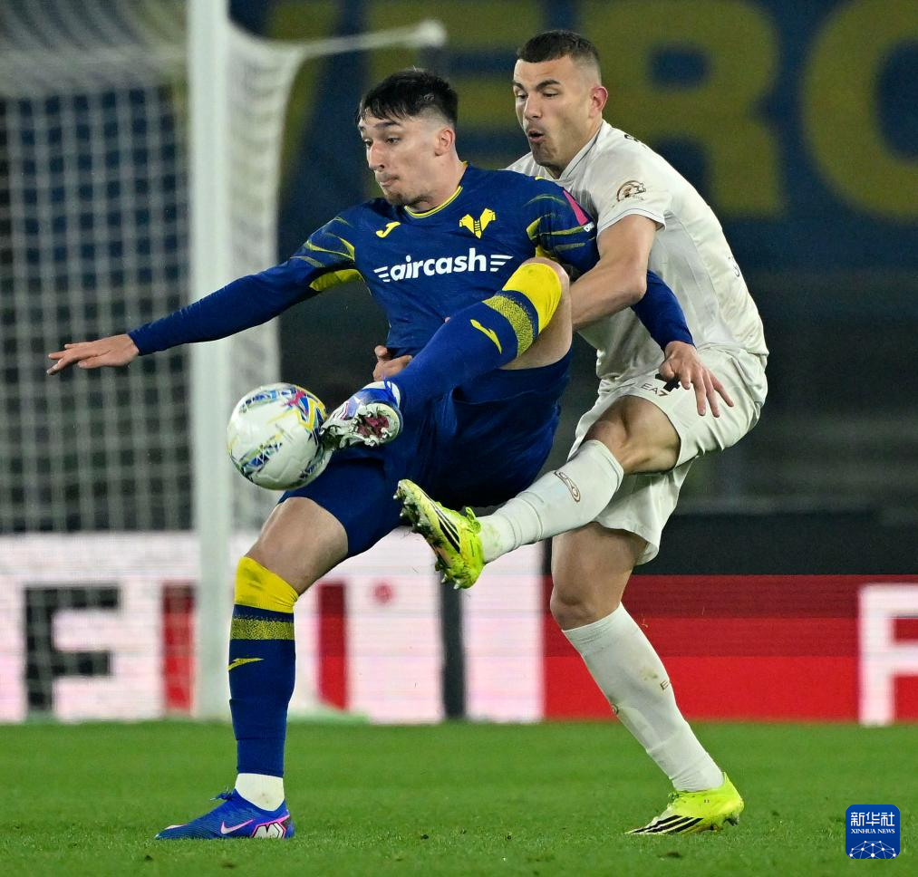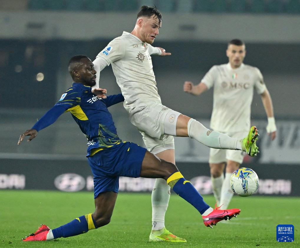 2月28日,那不勒斯队球员霍伊伦(右)与维罗纳队球员贝拉-科沙在比赛中拼抢。