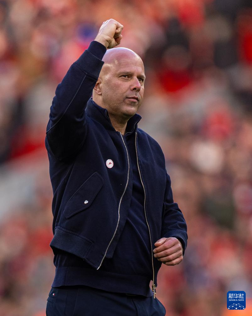 2月28日,利物浦队主教练斯洛特在赛后庆祝胜利。