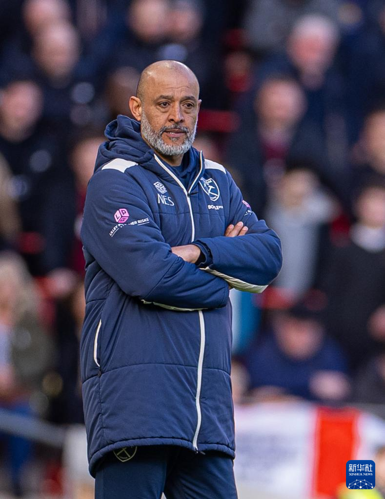 2月28日,西汉姆联队主教练努诺在场边观战。