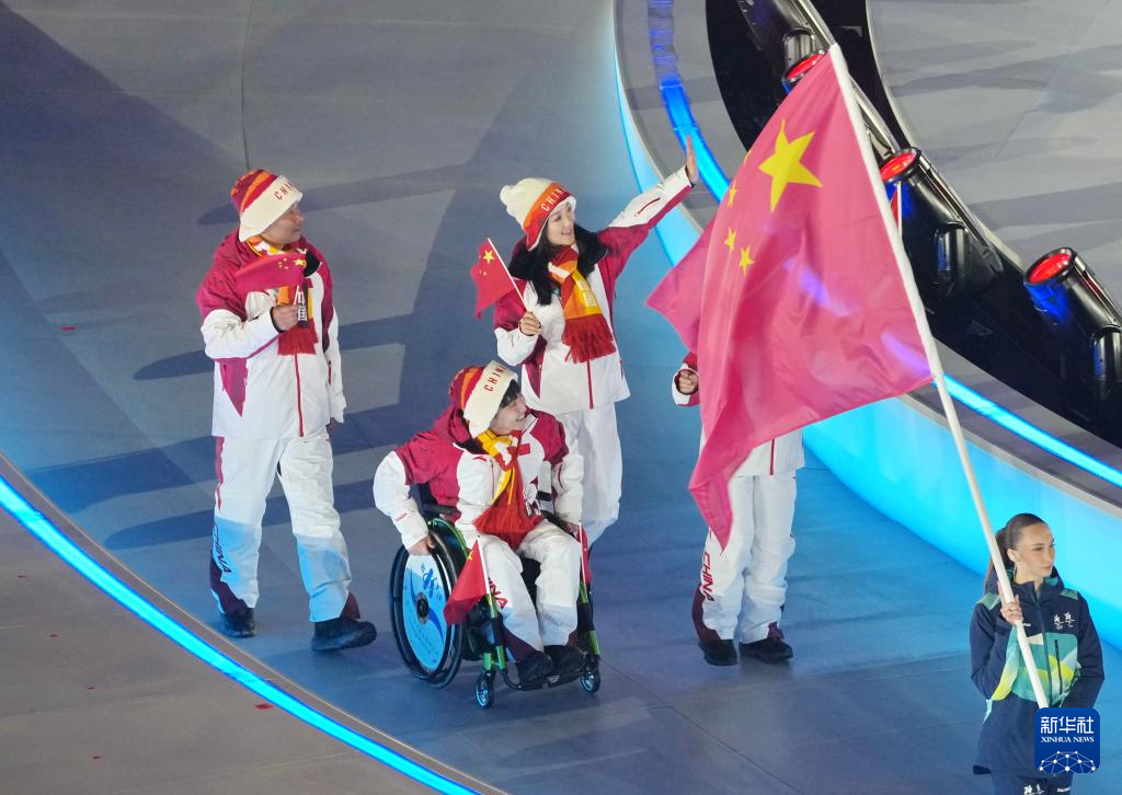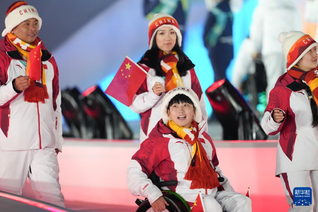 3月6日,国际残奥委会会旗在开幕式上入场。