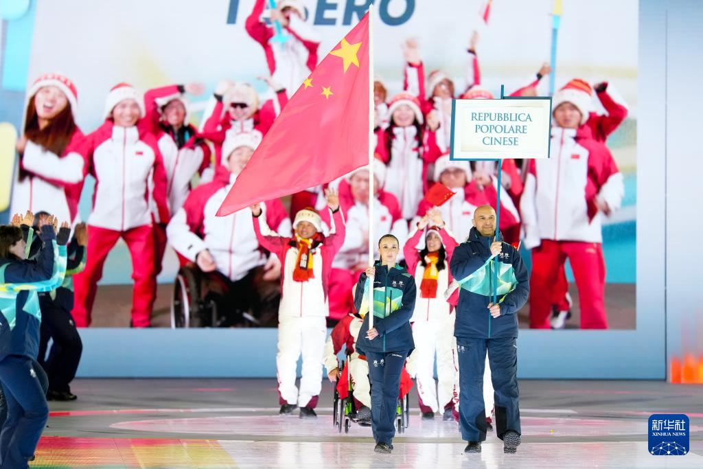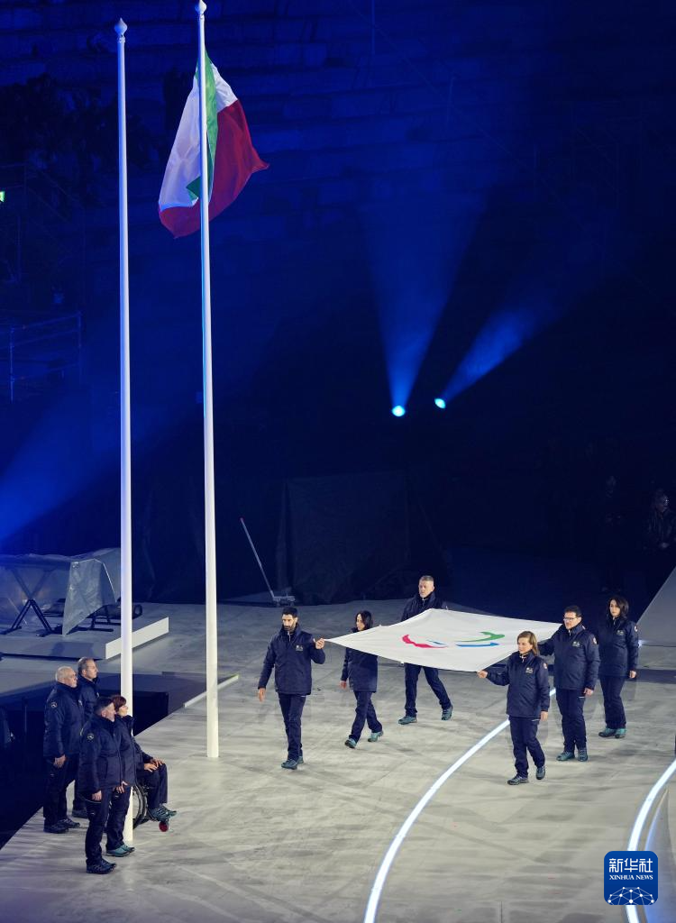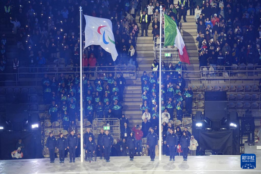 3月6日,国际残奥委会会旗和意大利国旗在开幕式上升起。