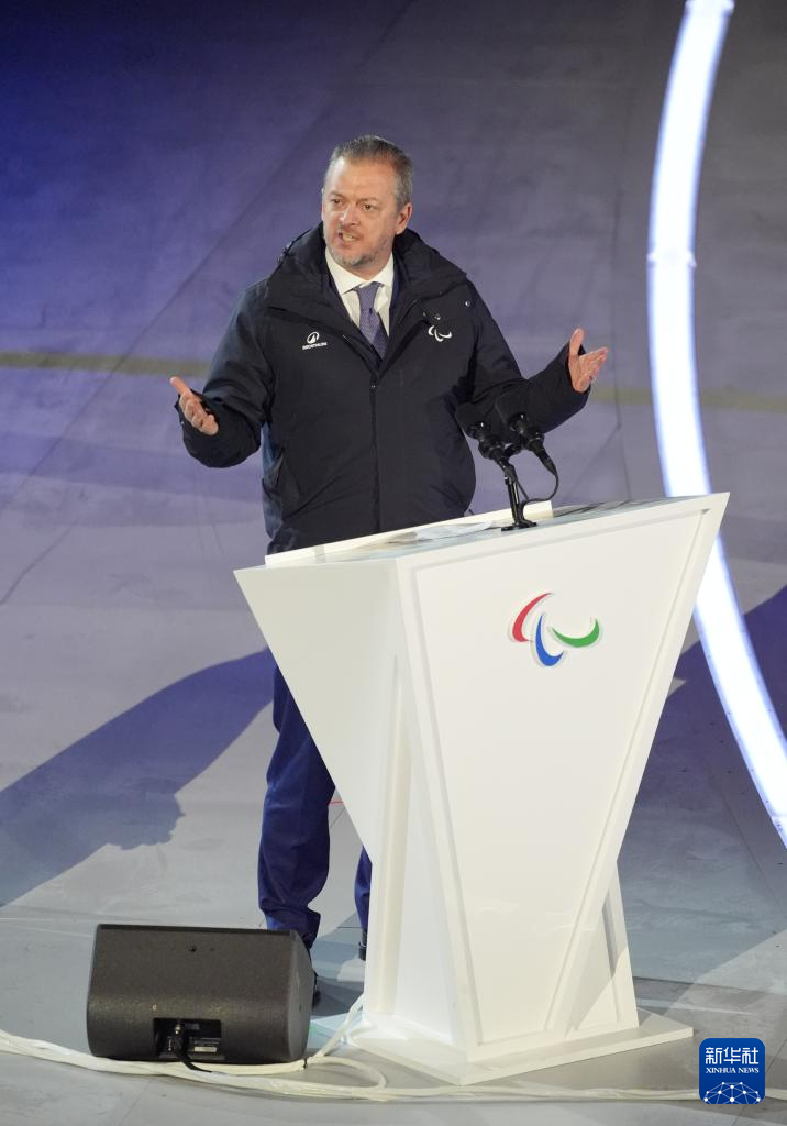 3月6日,国际残奥委会主席安德鲁·帕森斯在开幕式上致辞。