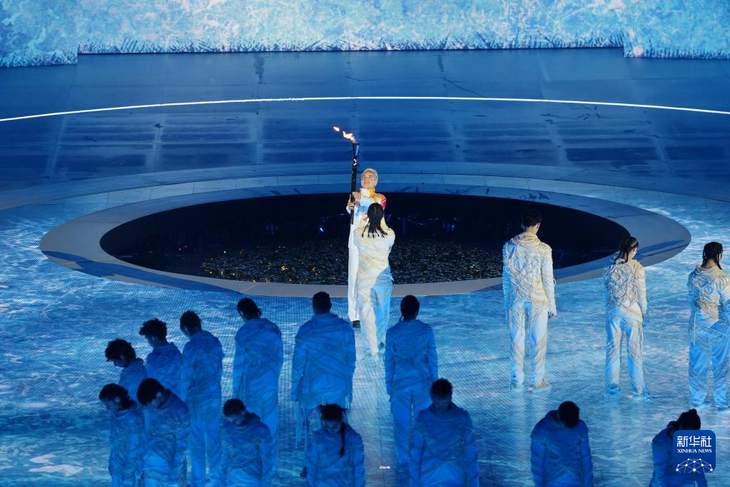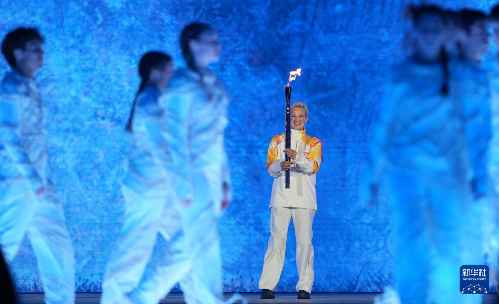 3月6日,火炬手贝贝·维奥手持火炬在开幕式上。
