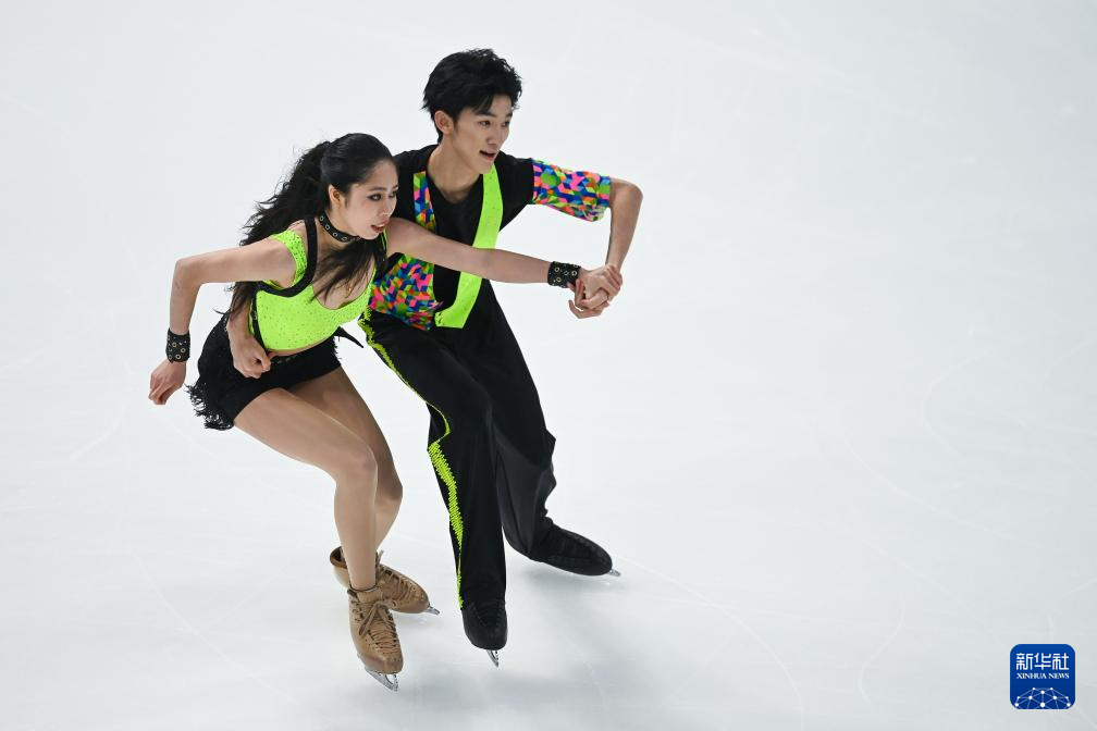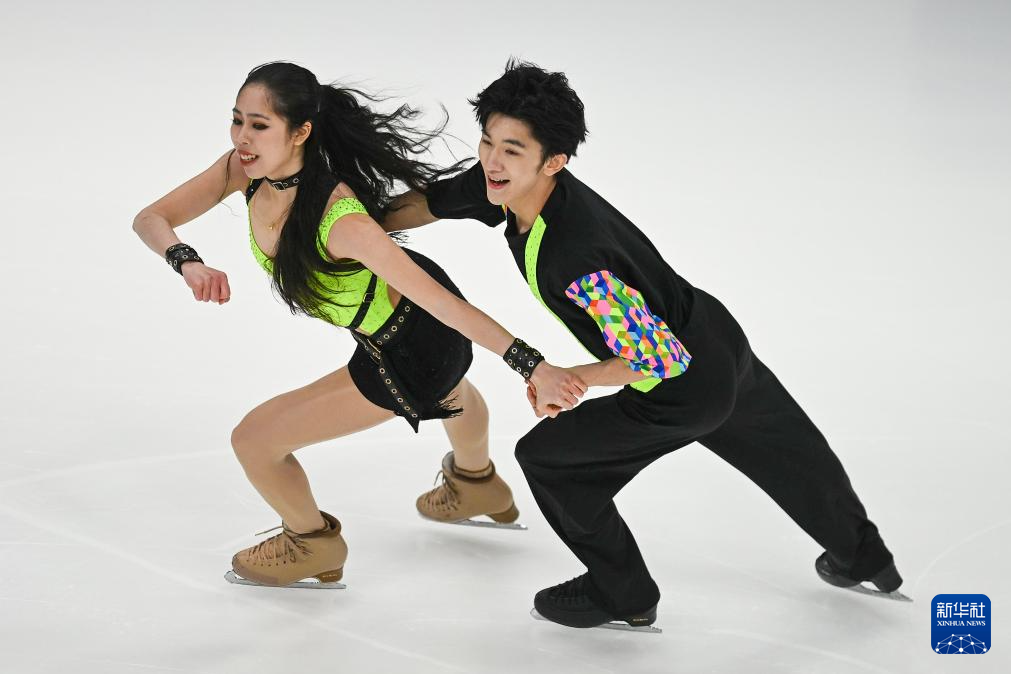 3月6日,中国组合殷善洁(左)/杨士锐在冰舞韵律舞比赛中。他们暂列第18名。