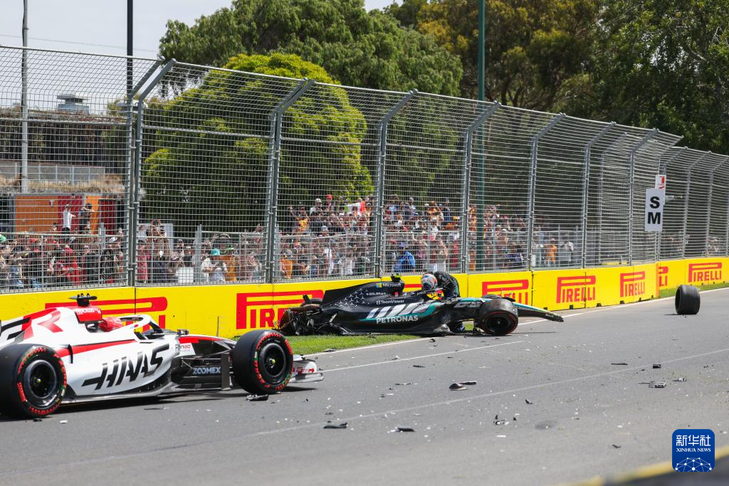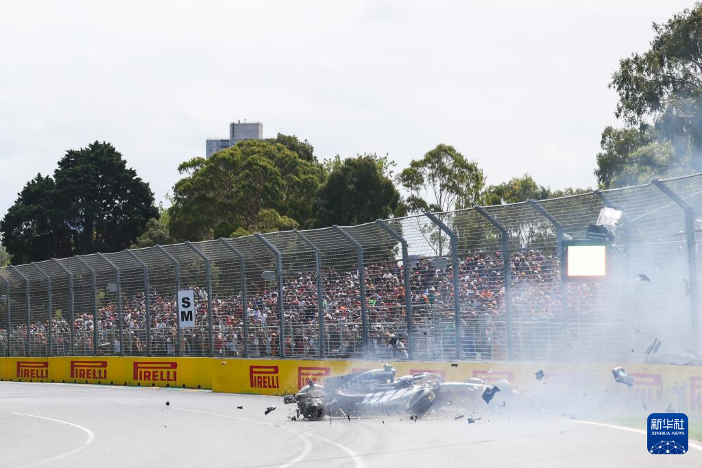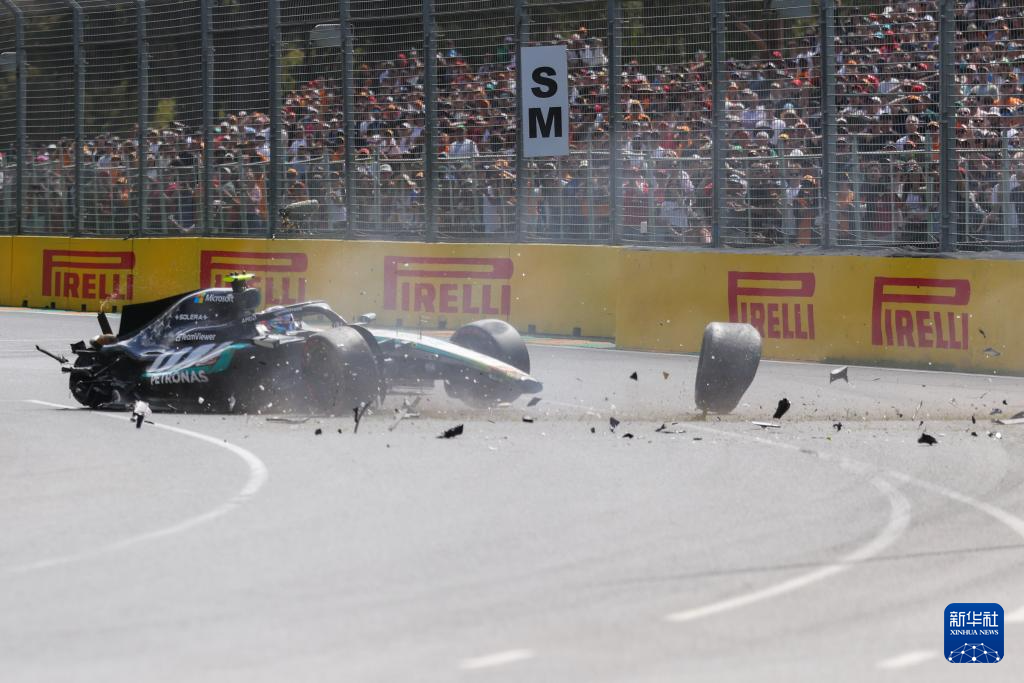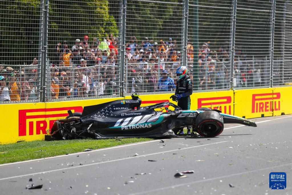 3月7日,梅赛德斯车队意大利车手安东内利的赛车在撞车后被吊离赛道。