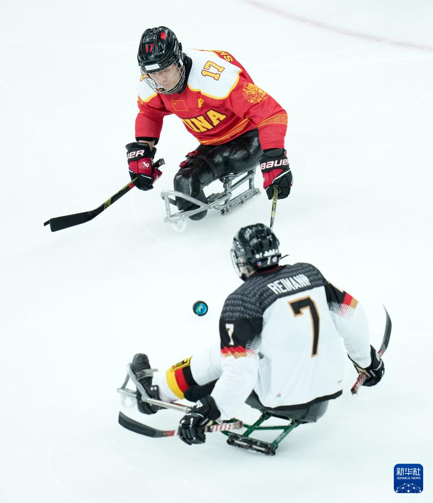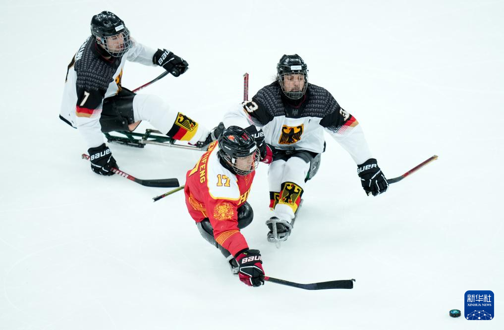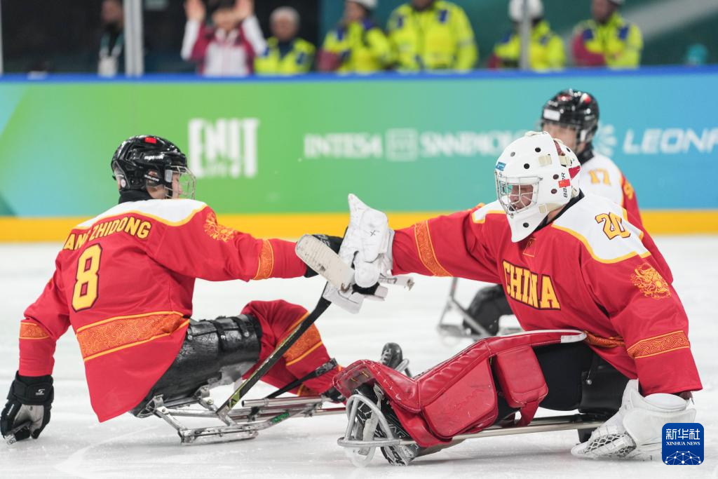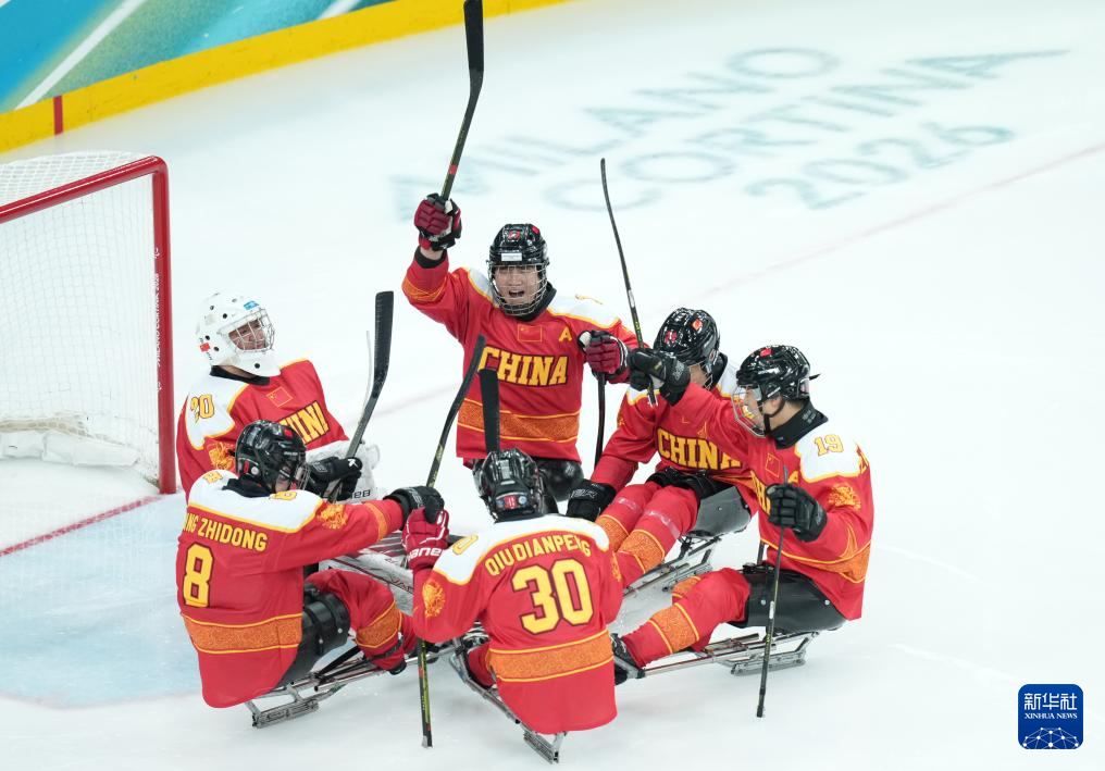 当地时间3月7日,在意大利米兰举行的米兰-科尔蒂纳冬残奥会残奥冰球小组赛A组比赛中,中国队12比0战胜德国队。