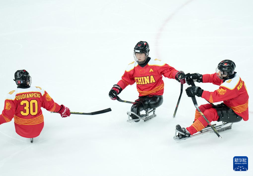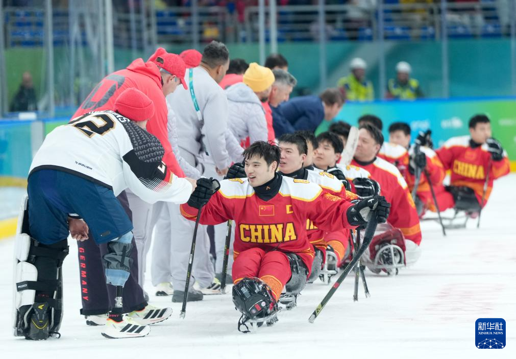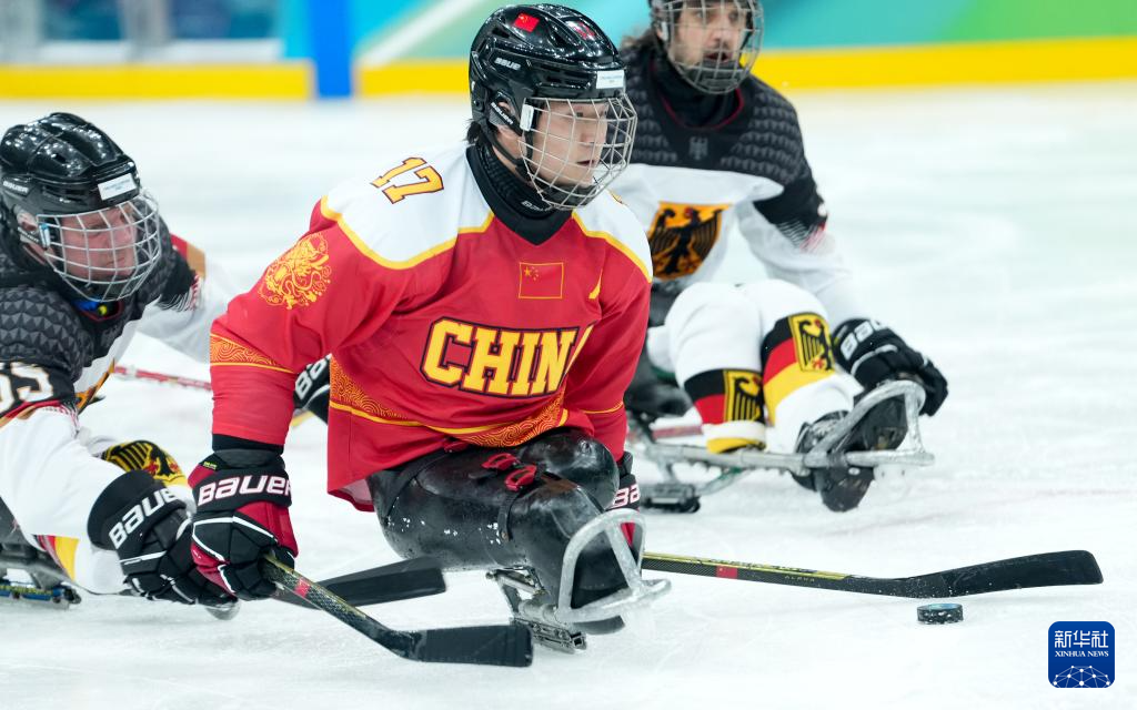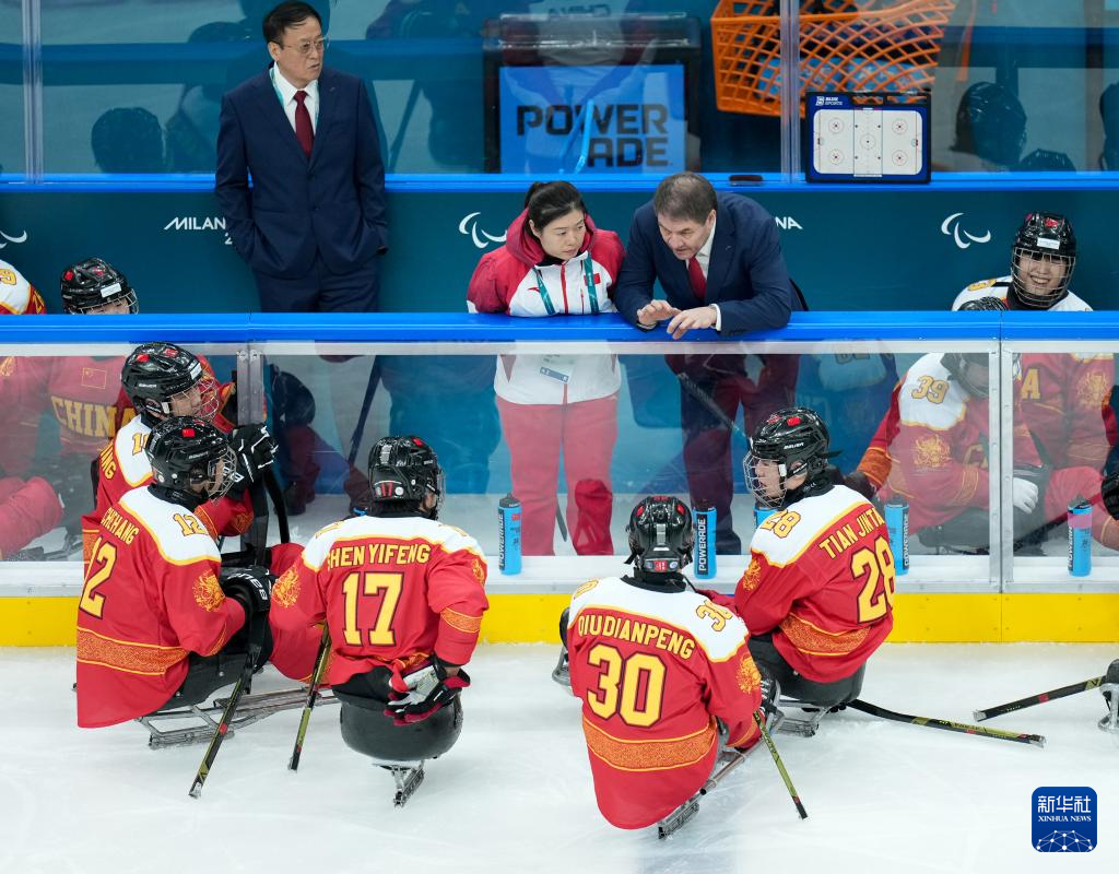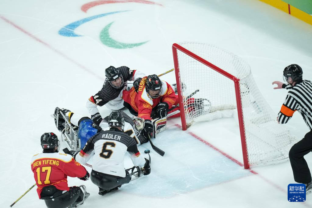 当地时间3月7日,在意大利米兰举行的米兰-科尔蒂纳冬残奥会残奥冰球小组赛A组比赛中,中国队12比0战胜德国队。