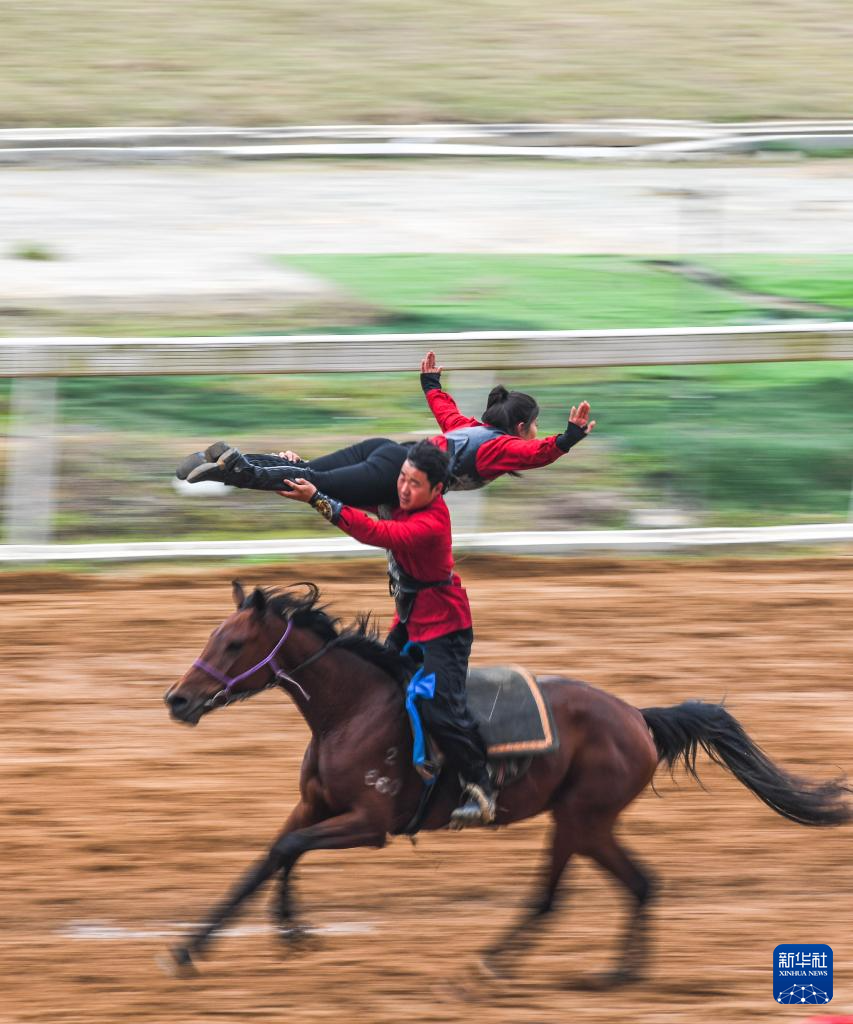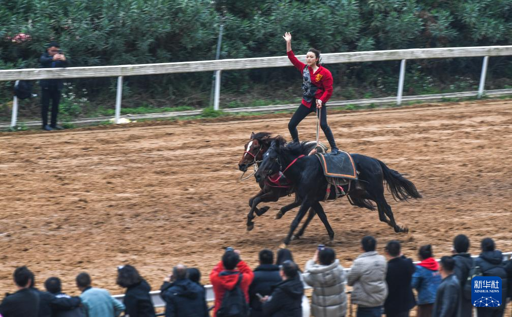3月7日,骑手在贵州省三都水族自治县举行的“村马”马术表演中。