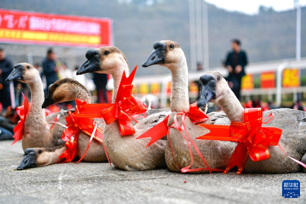 3月7日,在贵州省三都水族自治县“村马”比赛现场为活动准备的奖品——鹅。