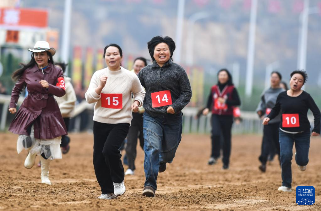 3月7日,女同胞们在2026年贵州“村马”第二届女骑手邀请赛间隙进行短跑比赛。