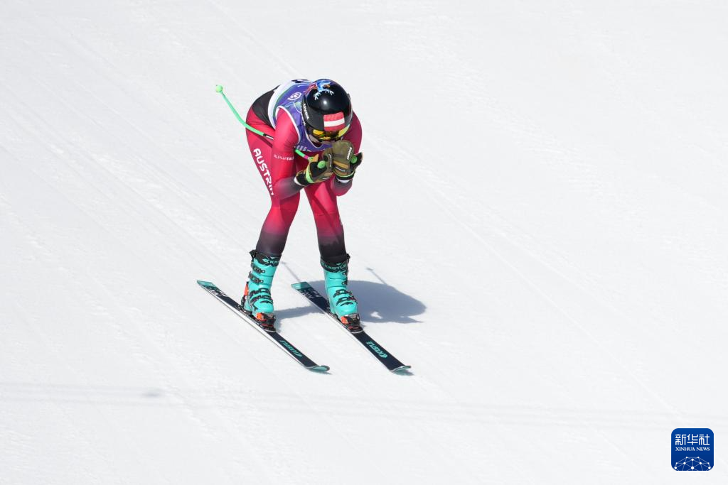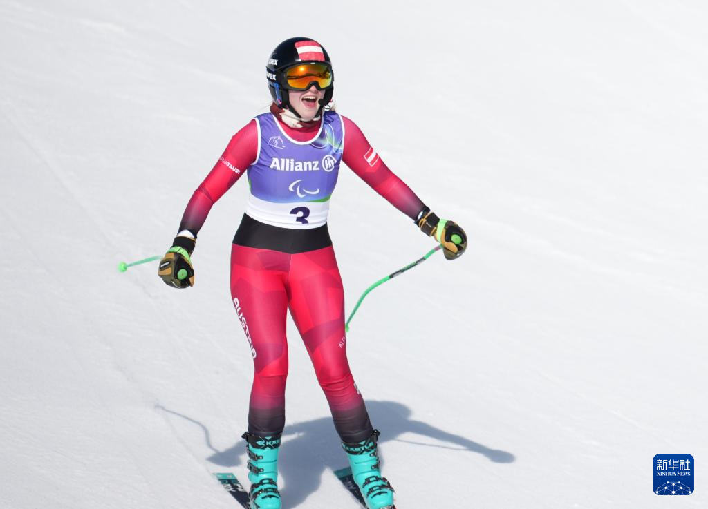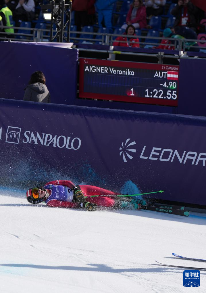 当地时间3月7日,在意大利科尔蒂纳举行的米兰-科尔蒂纳冬残奥会高山滑雪女子滑降(视障组)比赛中,奥地利选手韦罗妮卡·艾格纳夺得冠军。这是本届冬残奥会产生的首枚金牌。