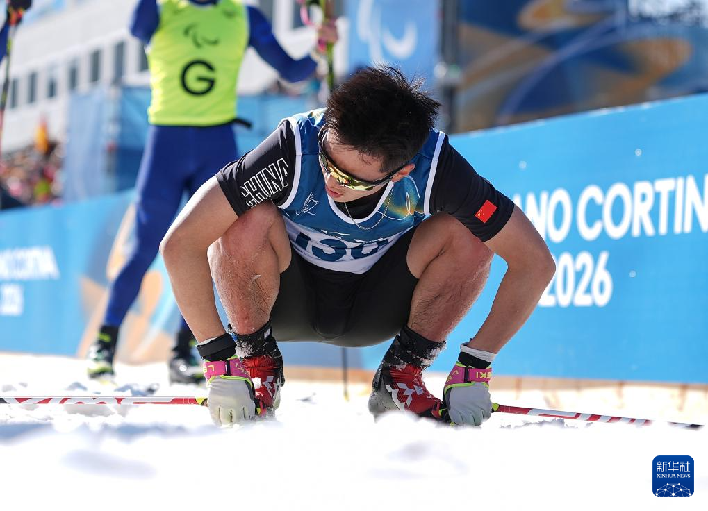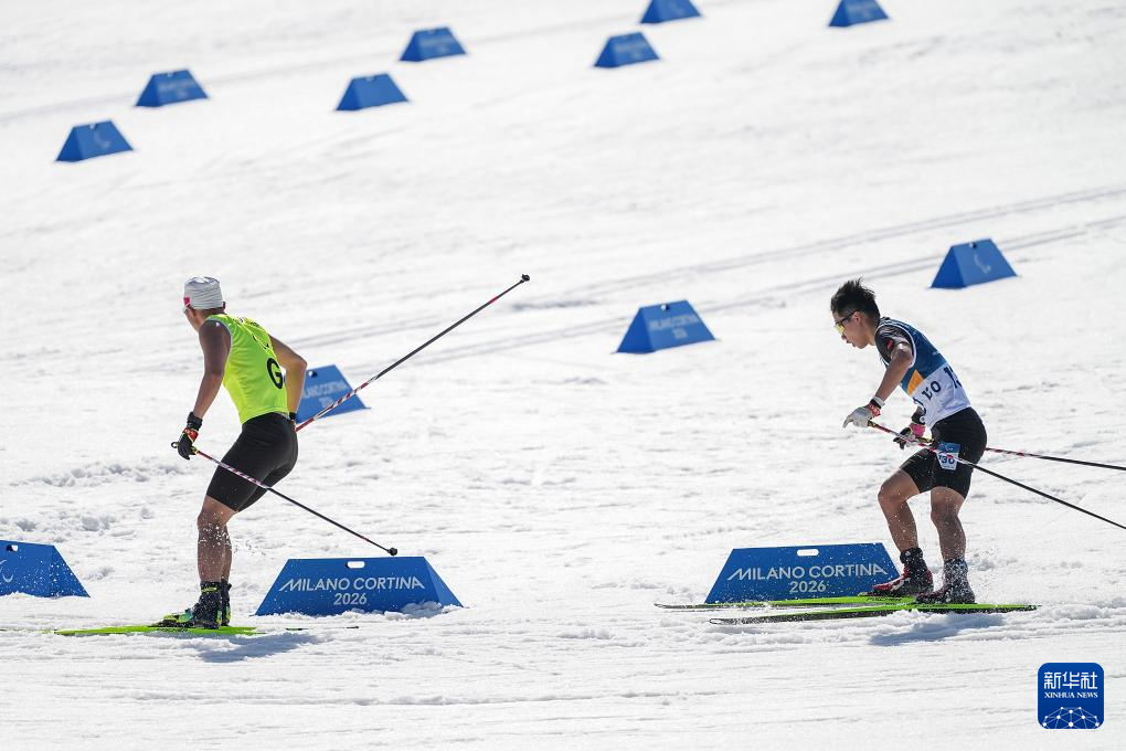 当地时间3月7日,米兰-科尔蒂纳冬残奥会冬季两项男子短距离(视障)比赛在意大利泰塞罗举行。