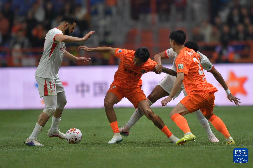 3月7日,云南玉昆队球员叶楚贵(左二)在比赛中拼抢。