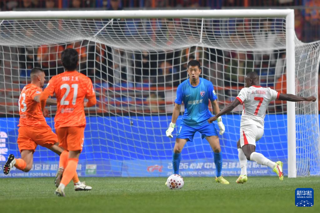 3月7日,在云南玉溪举行的2026赛季中国足球超级联赛第一轮比赛中,云南玉昆队主场3比1战胜青岛海牛队。